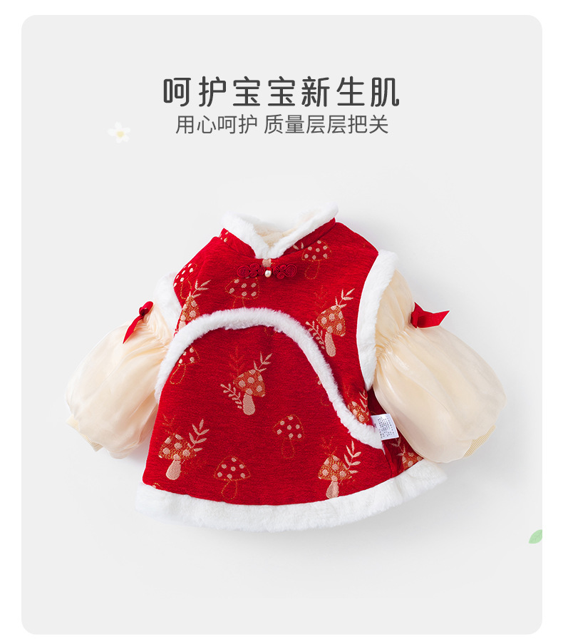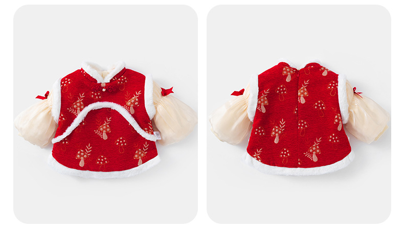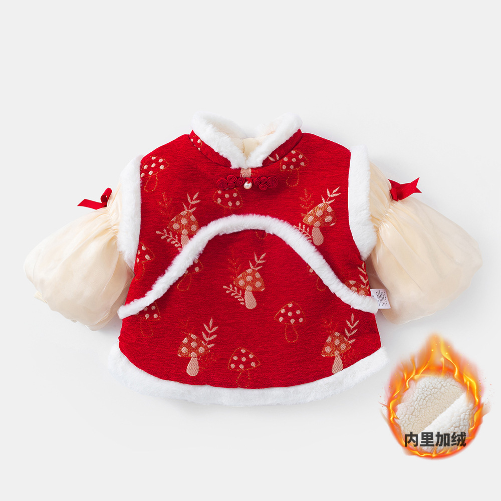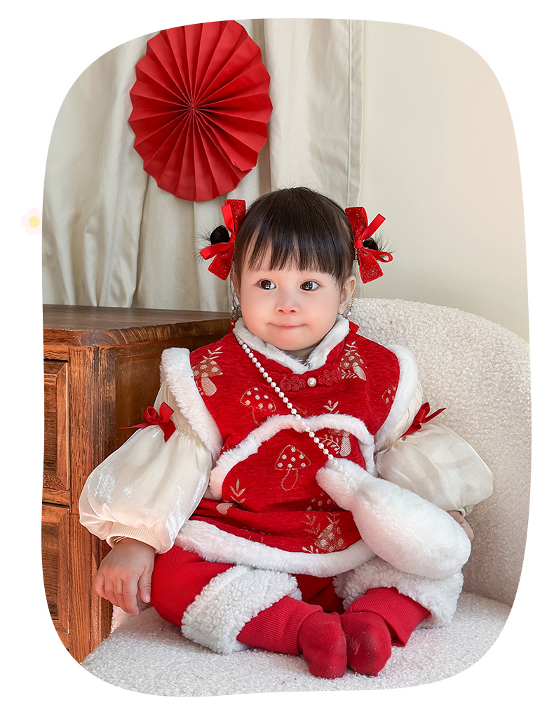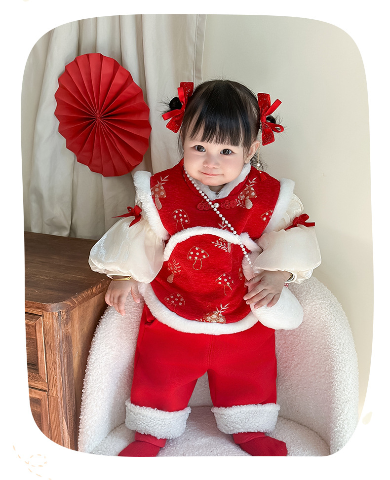 2024 년 아기 소녀 아기 기모 외국식 토끼 탑 세트 3971 가을과 겨울 소녀 따뜻한 외부 착용 투피스 세트