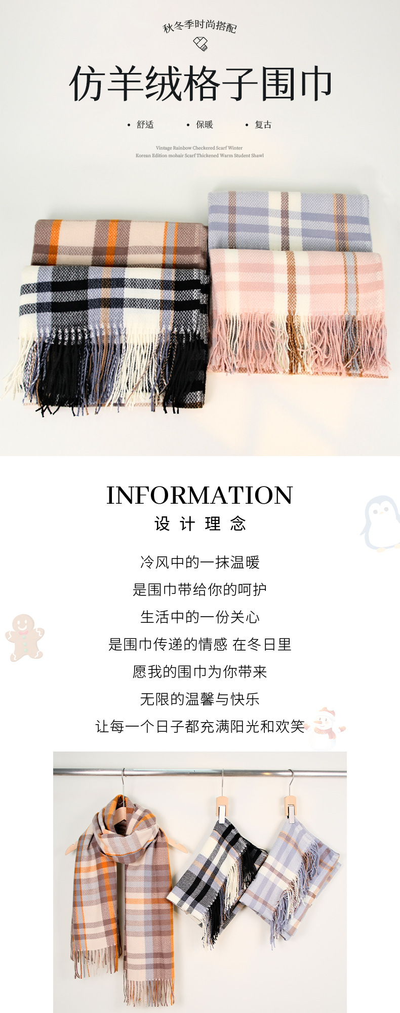 새로운 학술 스타일 체크 무늬 스카프 달콤한 신선한 가을과 겨울 한국 모조 캐시미어 따뜻한 스카프 술 목도리 도매