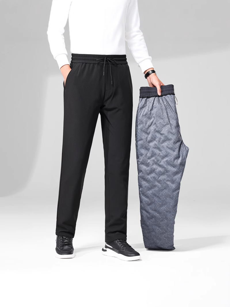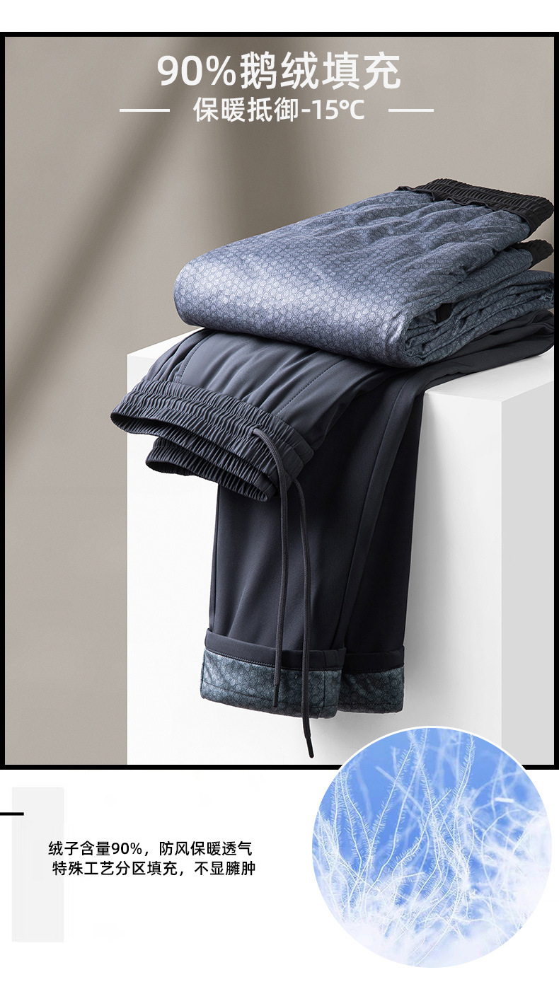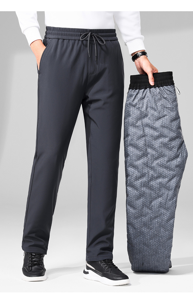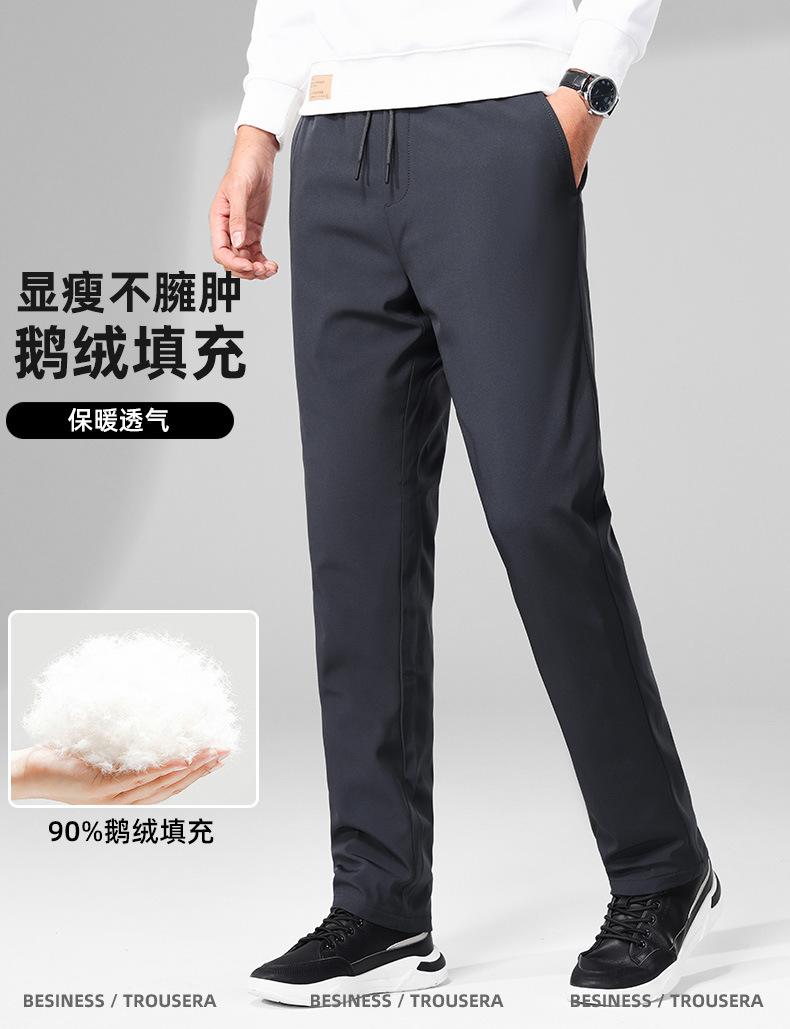 2024 겨울 신상 남성 비즈니스 다운 팬츠 단색 신축성 허리 두꺼운 거위털 스트레이트 캐주얼 팬츠스토어 가기