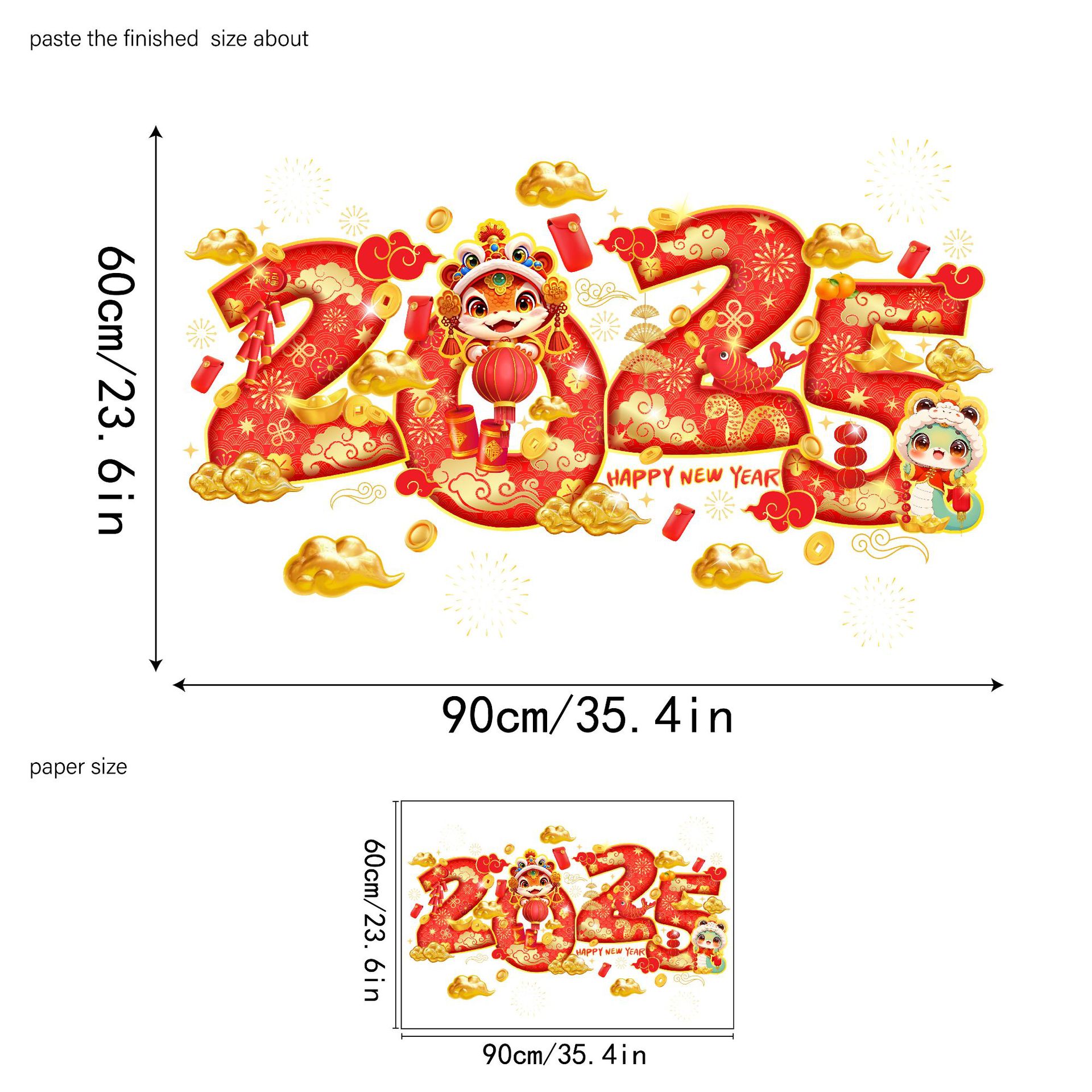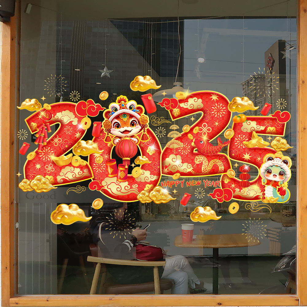 Yiyao JD6919 새해 창조적 인 빨간 랜턴 폭죽 유리 스티커 봄 축제 쇼핑몰 유리 문 및 창 정전기 스티커스토어 가기