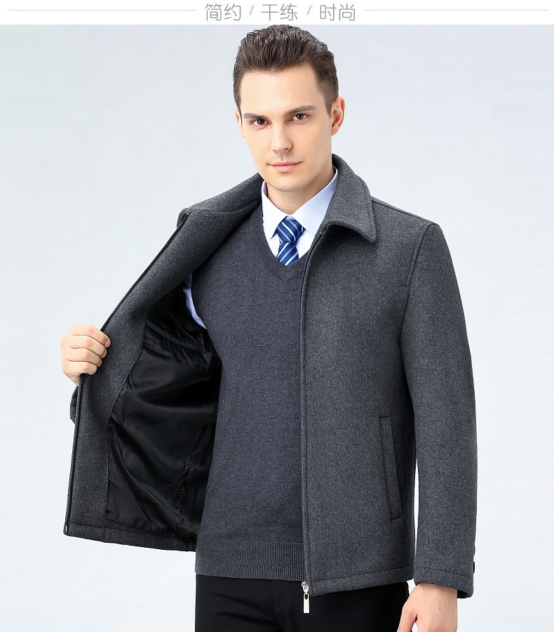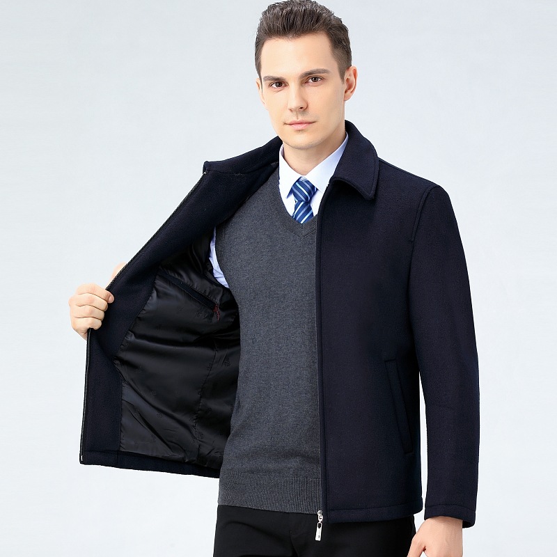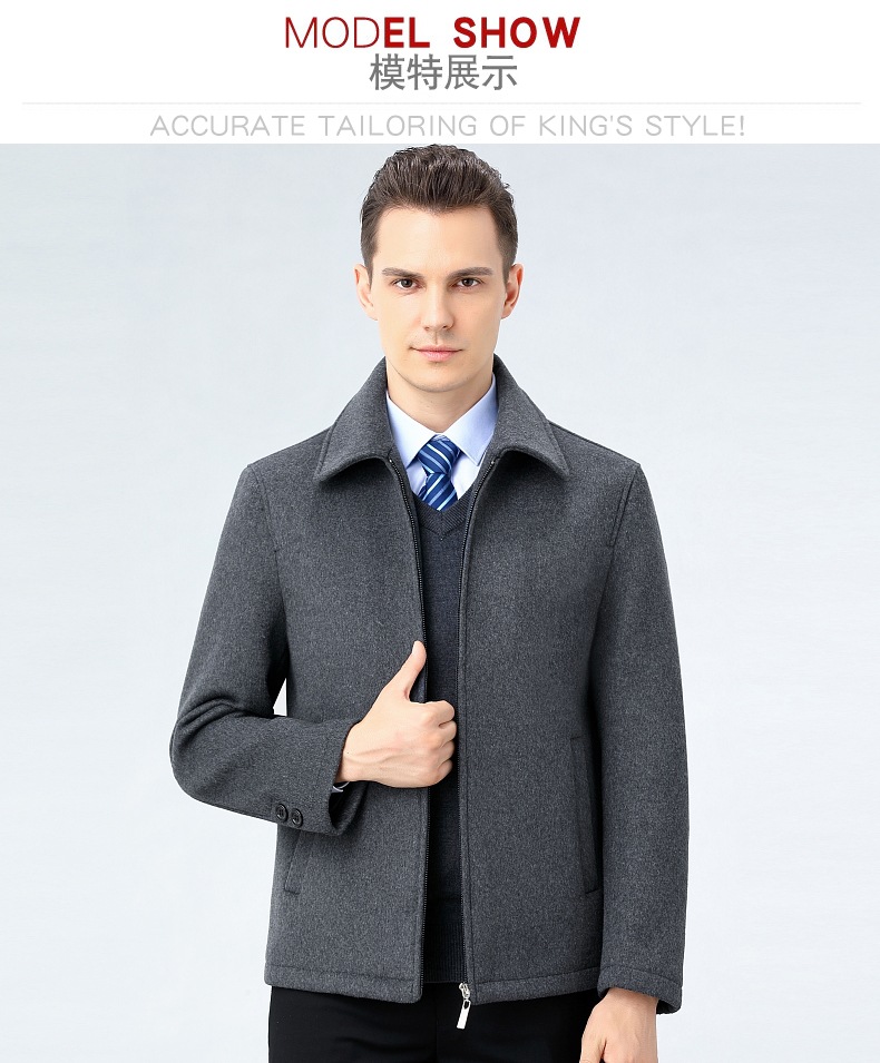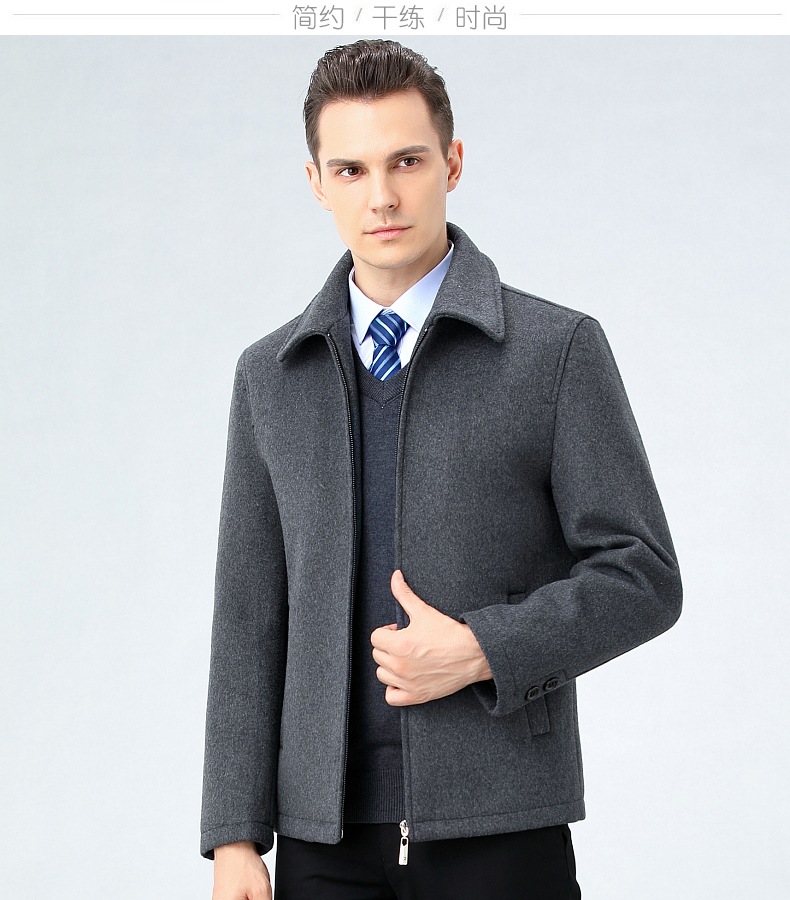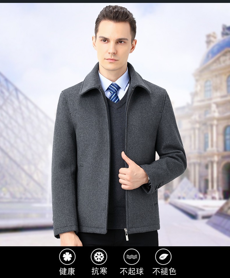 카운터 하이 엔드 남성 가을 및 겨울 중년 아빠의 원피스 코트 울 비즈니스 두꺼운 캐시미어 재킷