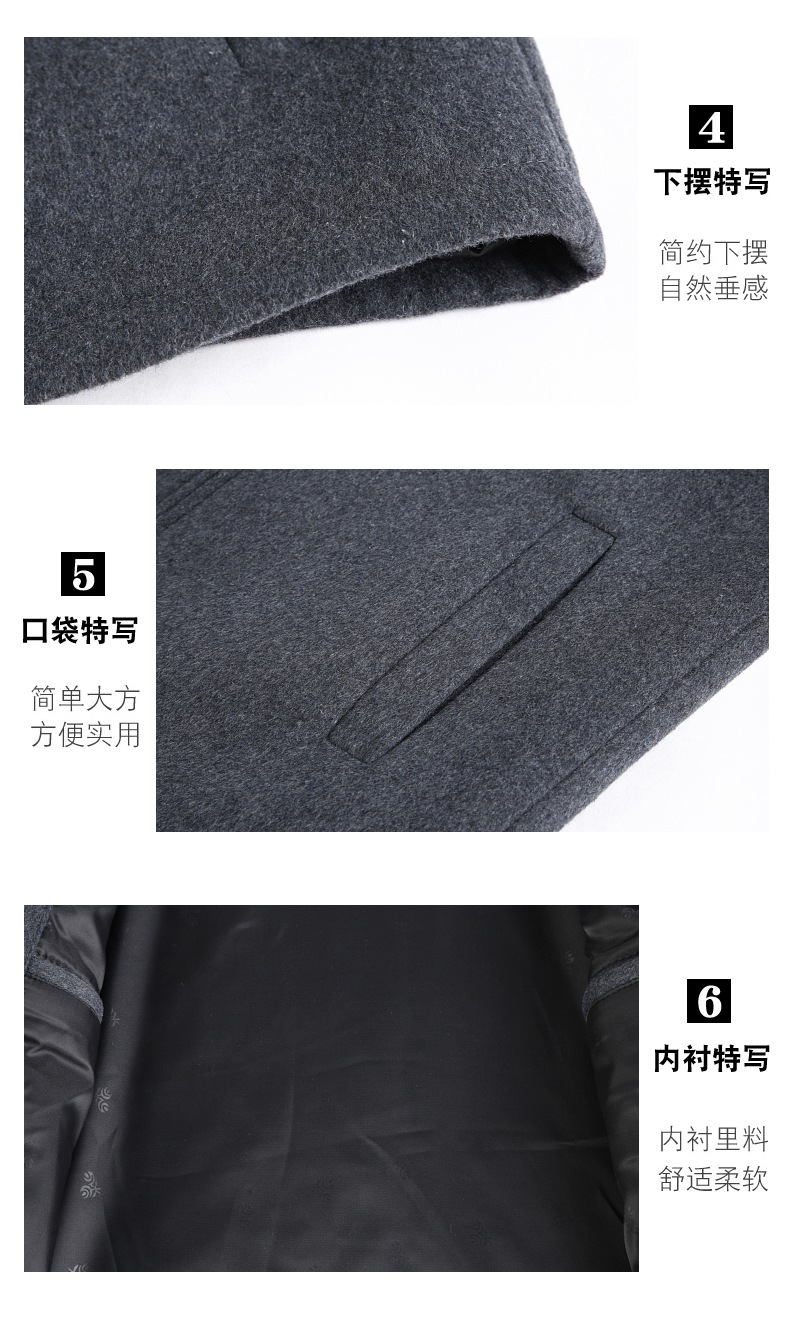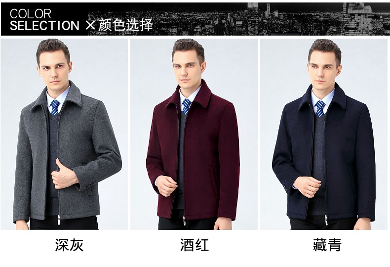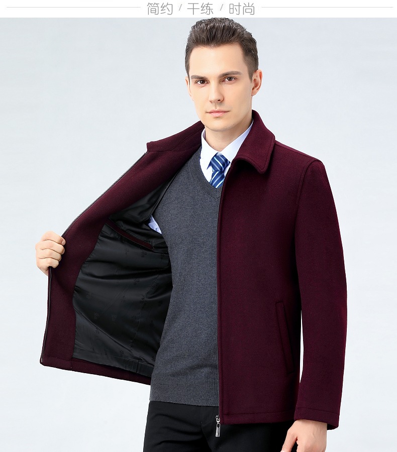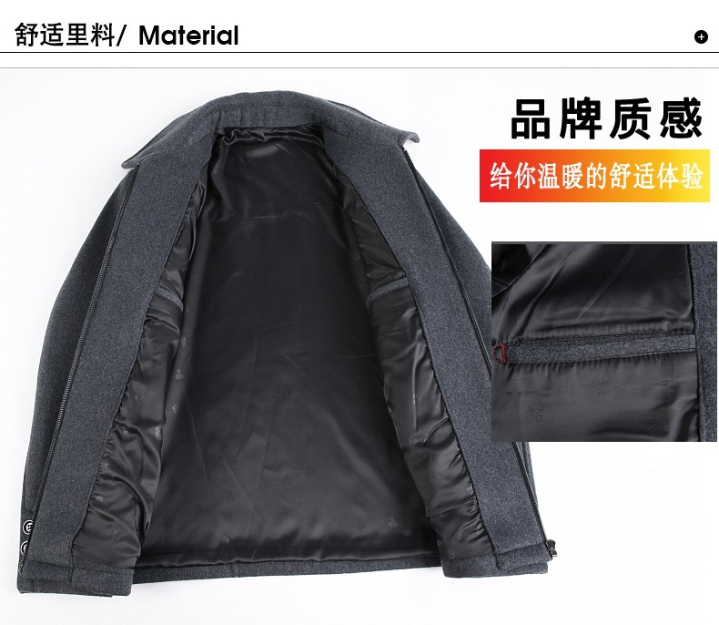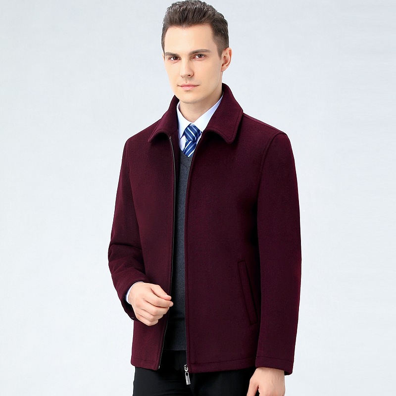 카운터 하이 엔드 남성 가을 및 겨울 중년 아빠의 원피스 코트 울 비즈니스 두꺼운 캐시미어 재킷