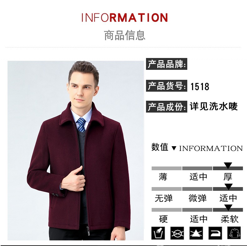 카운터 하이 엔드 남성 가을 및 겨울 중년 아빠의 원피스 코트 울 비즈니스 두꺼운 캐시미어 재킷스토어 가기