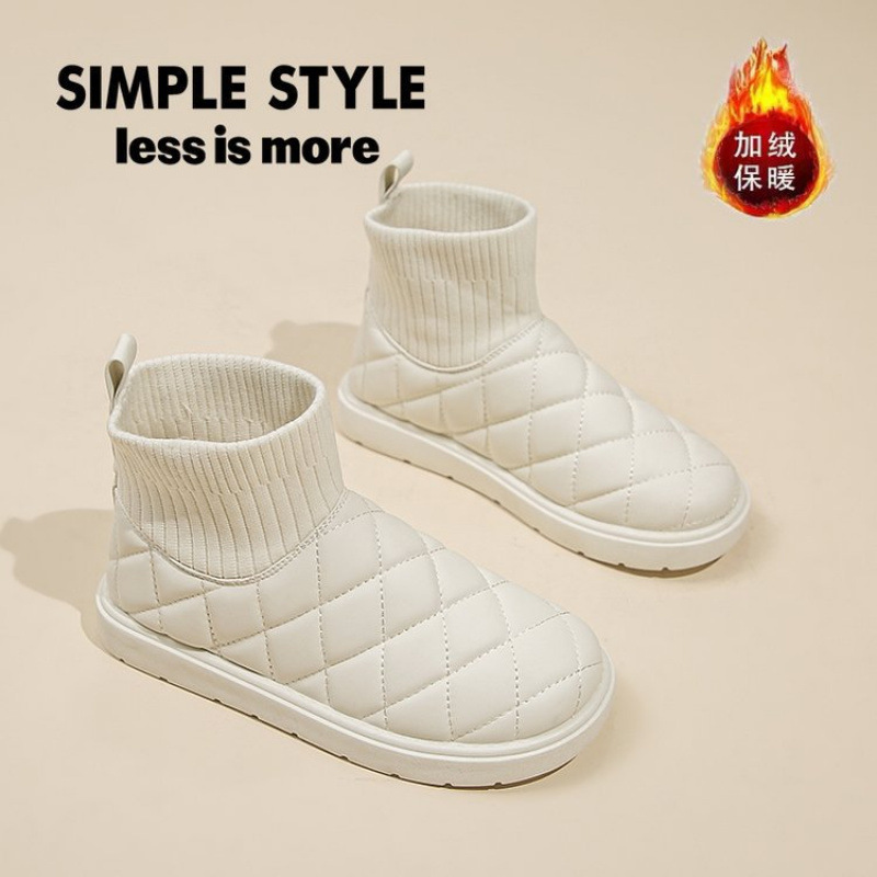 2024 새로운 스노우 부츠 여성의 겨울 두꺼운 밑창 기모 따뜻한면 신발 탄성 짧은 양말 부츠 니트 방수 부츠스토어 가기