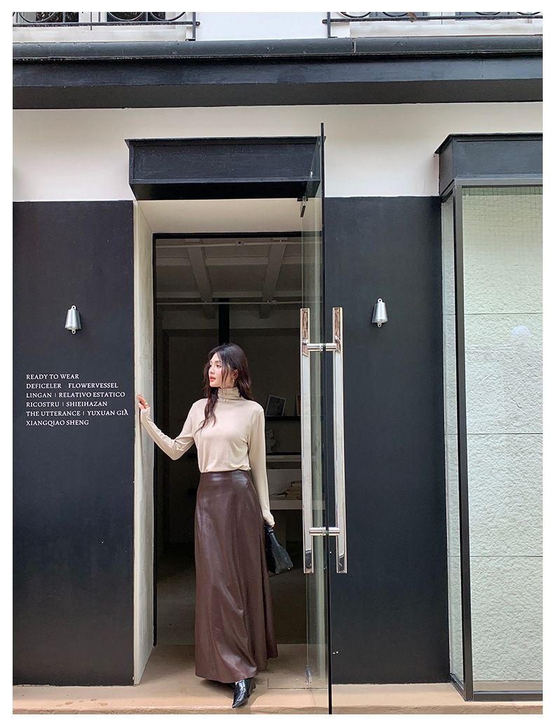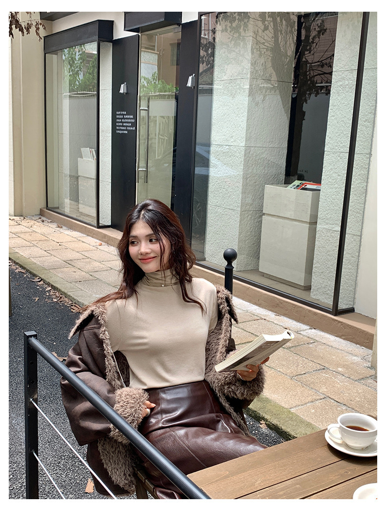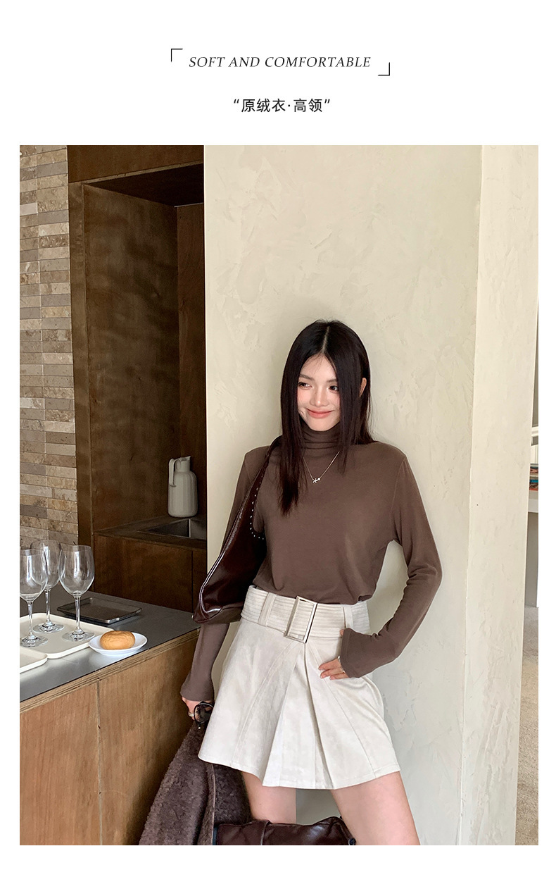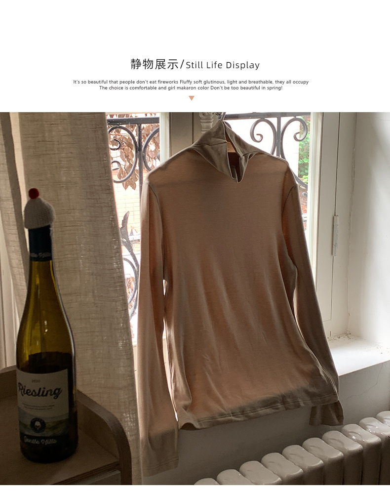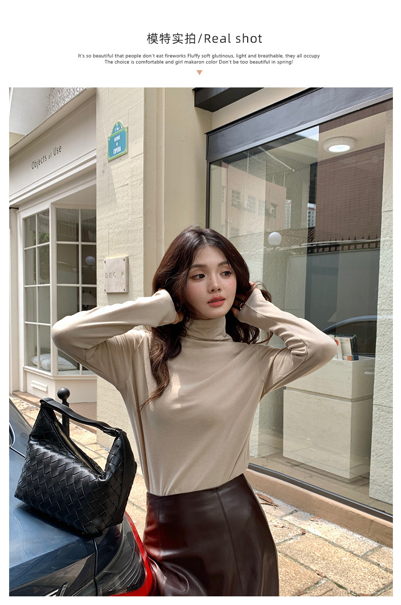 Ai Chunshi 가을과 겨울 Lyocell 하이 칼라 베이스 셔츠 여자 텐셀 슬리밍 올 매치 스웨터 울 따뜻한 탑