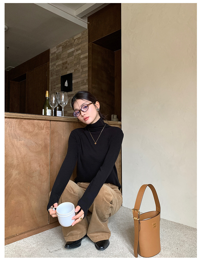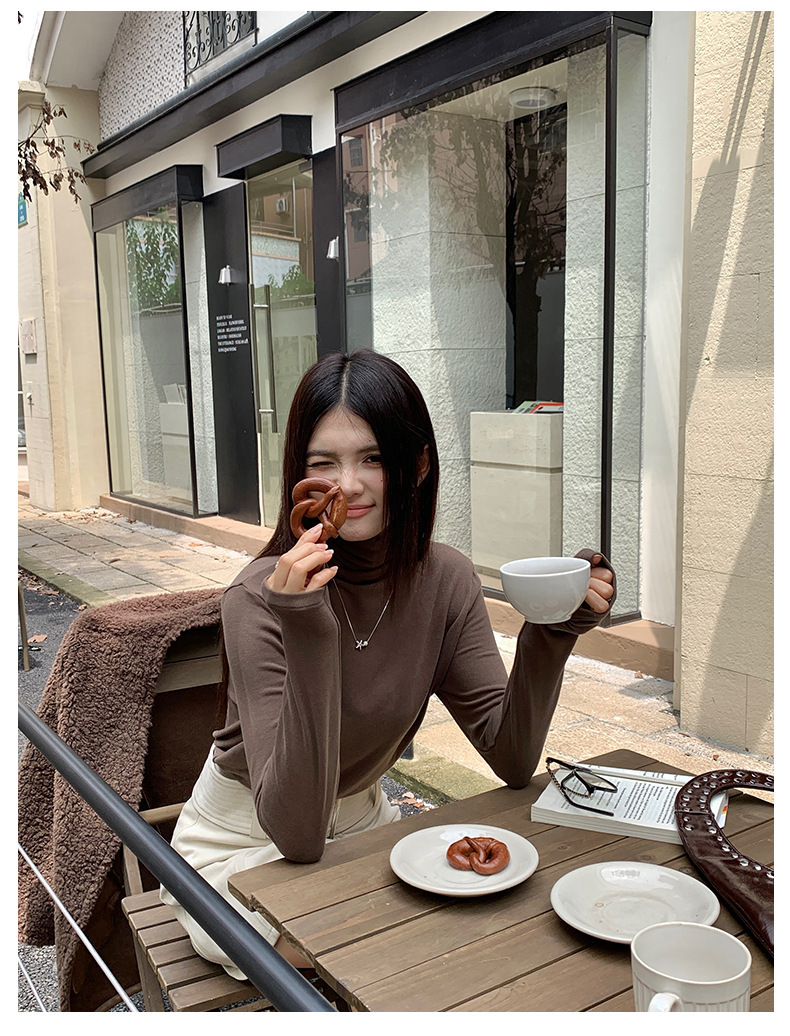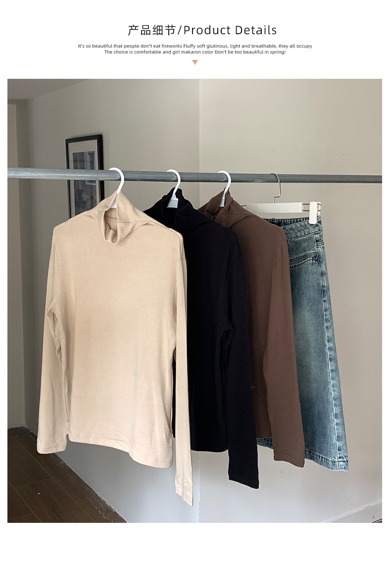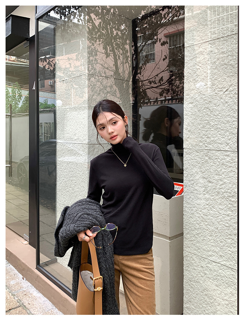 Ai Chunshi 가을과 겨울 Lyocell 하이 칼라 베이스 셔츠 여자 텐셀 슬리밍 올 매치 스웨터 울 따뜻한 탑스토어 가기