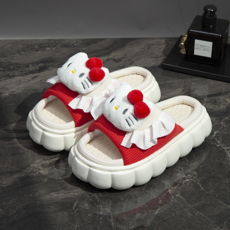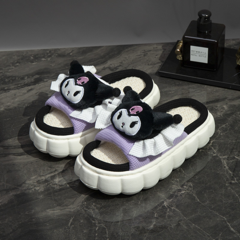 산리오 리넨 슬리퍼 여성 유구이 개 사계절 바닥 통기성 두꺼운 바닥 홈 실내 여름 홈 만화스토어 가기