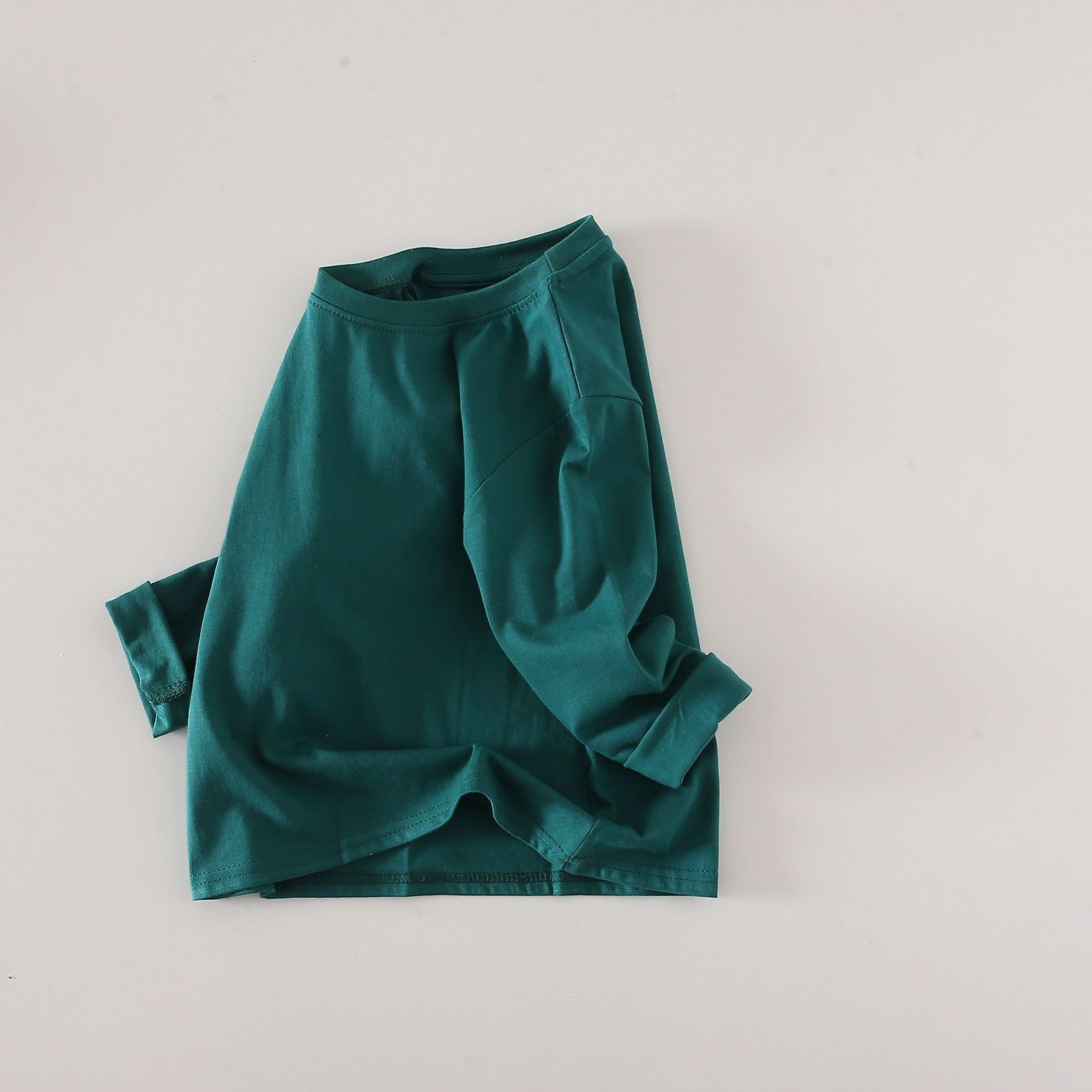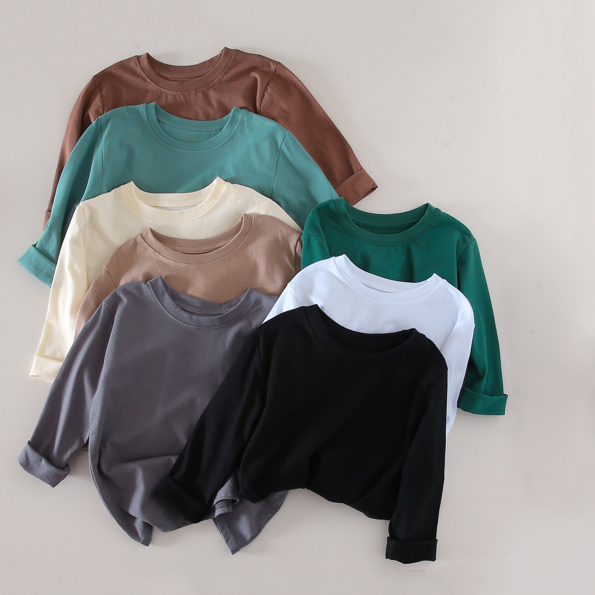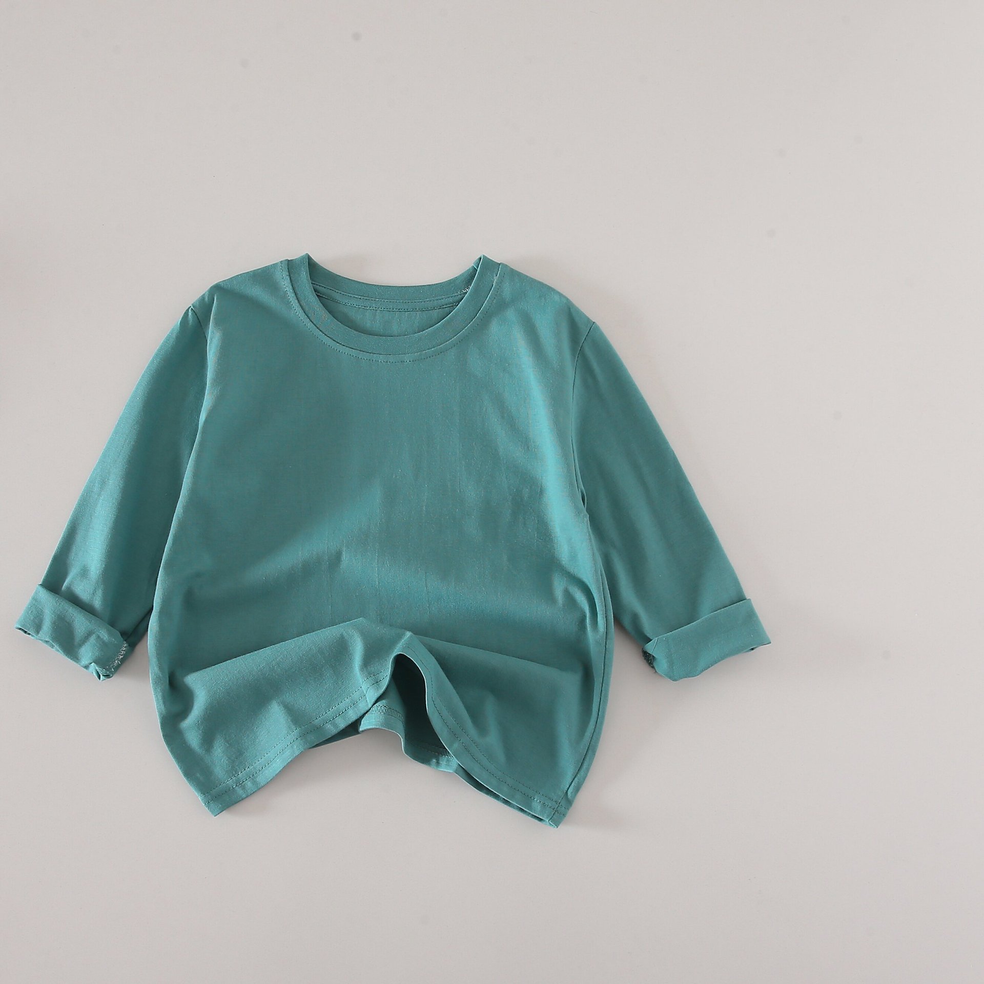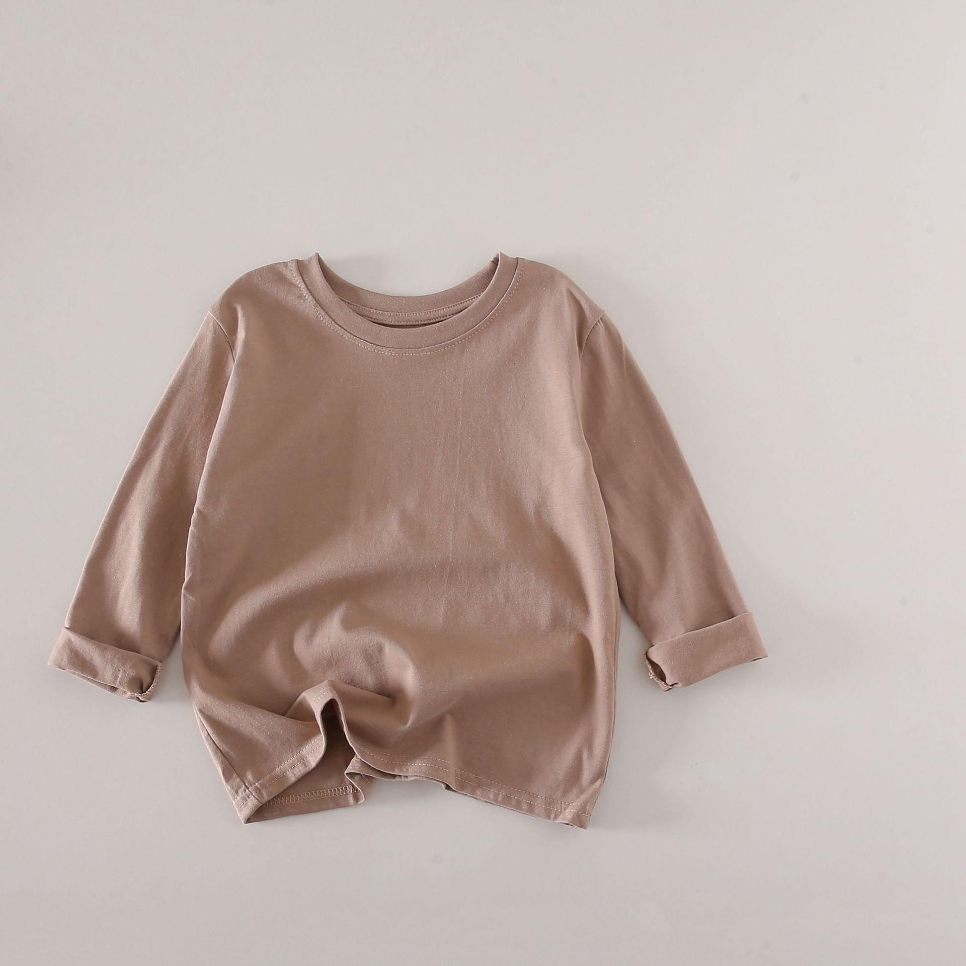 2025 봄 아동베이스 셔츠 코튼 소녀 소년 캔디 컬러 긴 소매 중대형 어린이 긴 소매 티셔츠 라운드 넥