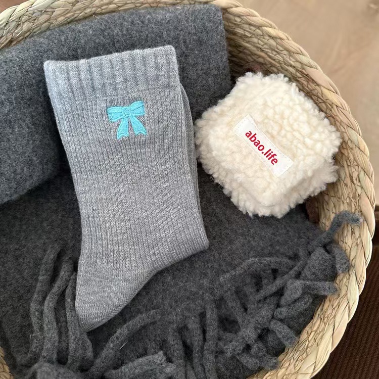 Bowknot 양말 여성 가을 겨울 한국 스타일 Ins 따뜻한 벨벳 빈티지 미드 튜브 양말 다크 브라운 스타일 여성용 미드 튜브 양말스토어 가기
