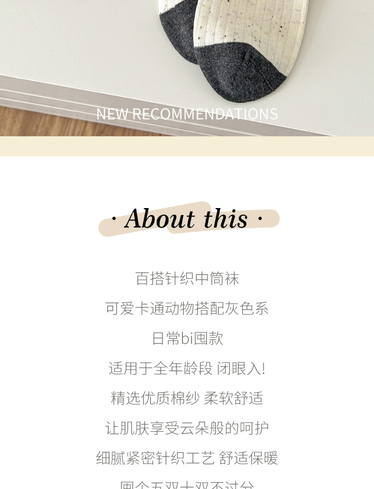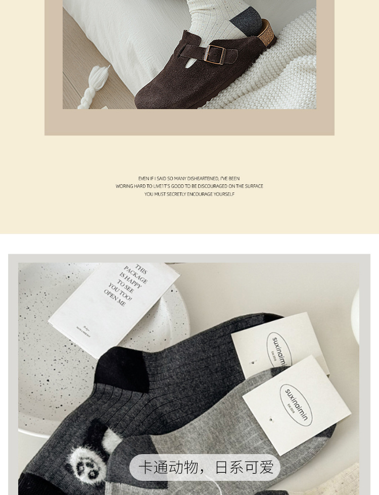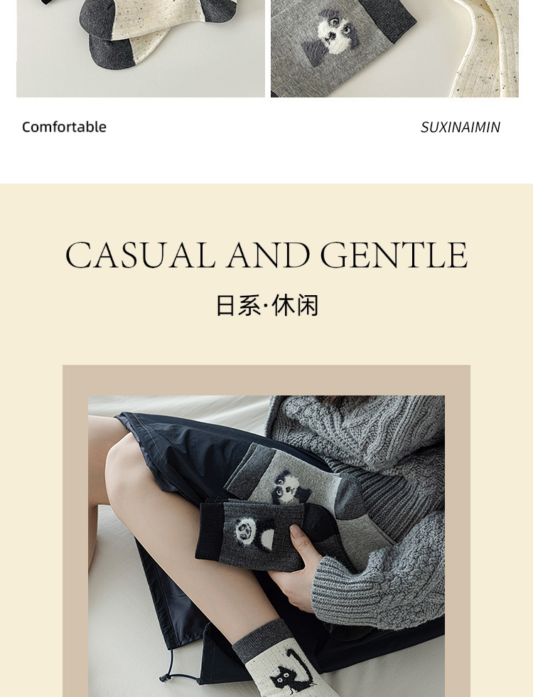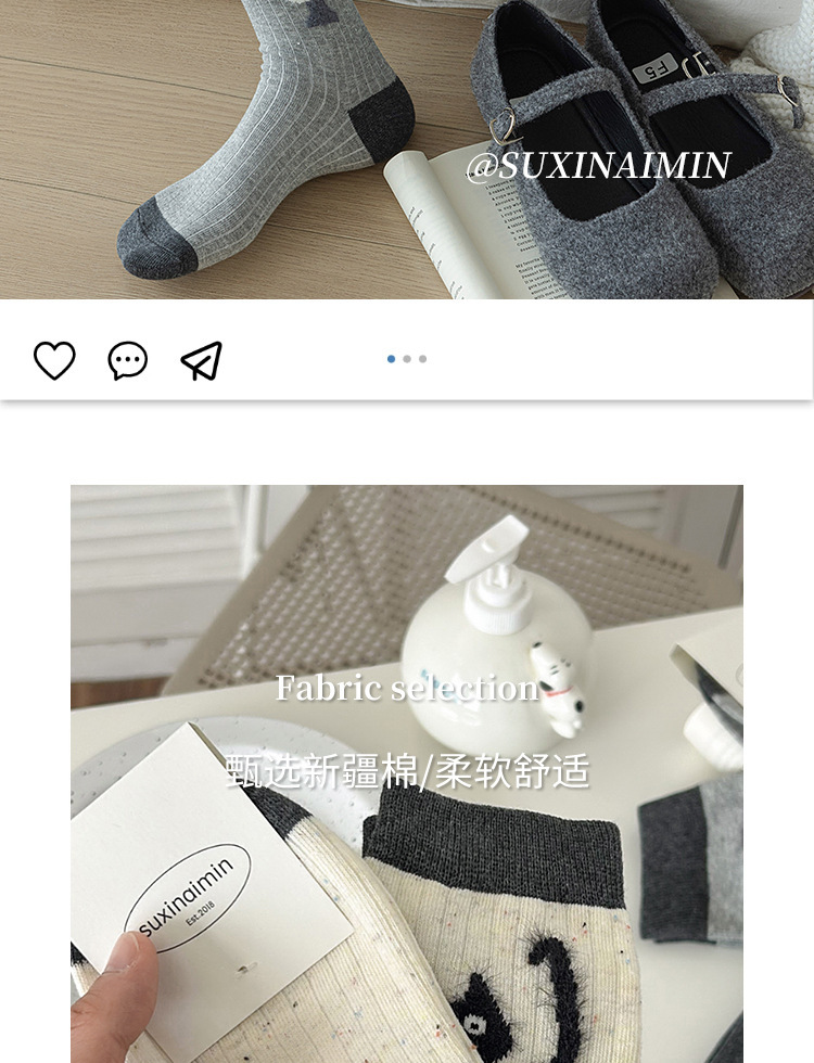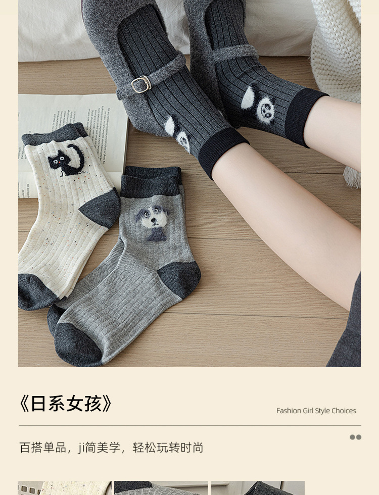 Suxinaimin 가을과 겨울 양말 여성용 트렌디 한 일본 틈새 디자인 귀여운 작은 동물 미드 튜브 양말