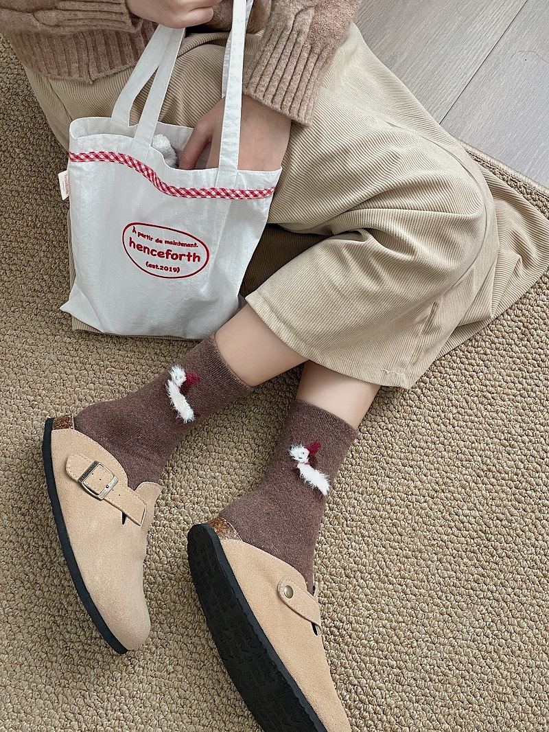 "만남" 귀여운 만화 강아지 더미 양말 어린이 목 개 두꺼운 양모 미드 양말 Instagram 패션 가을과 겨울