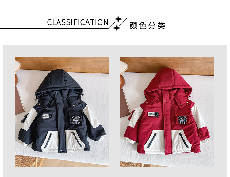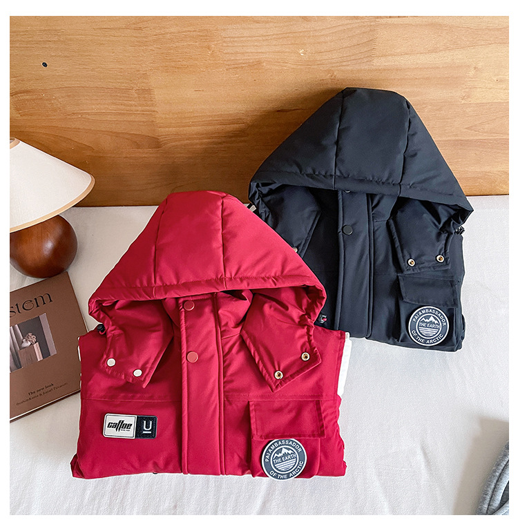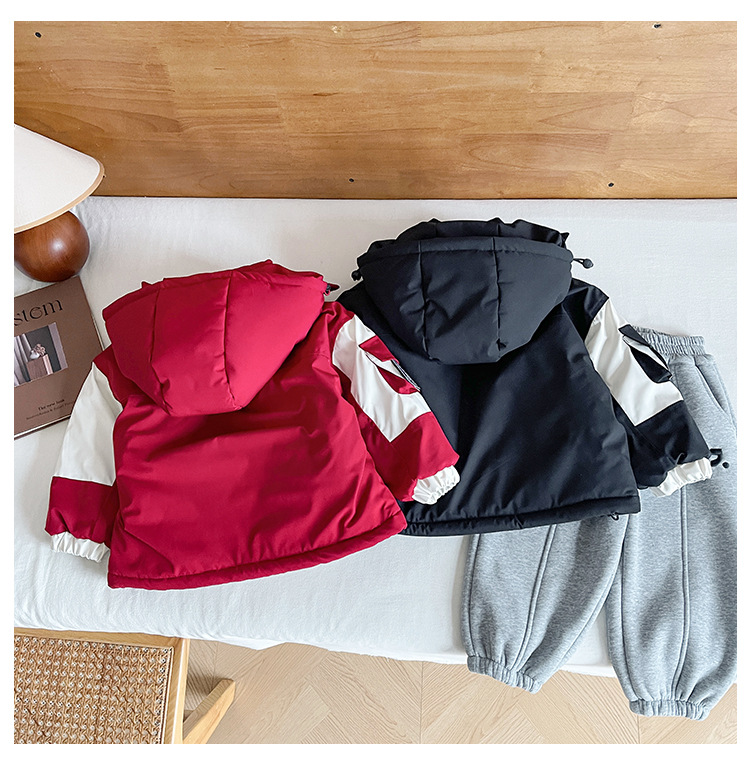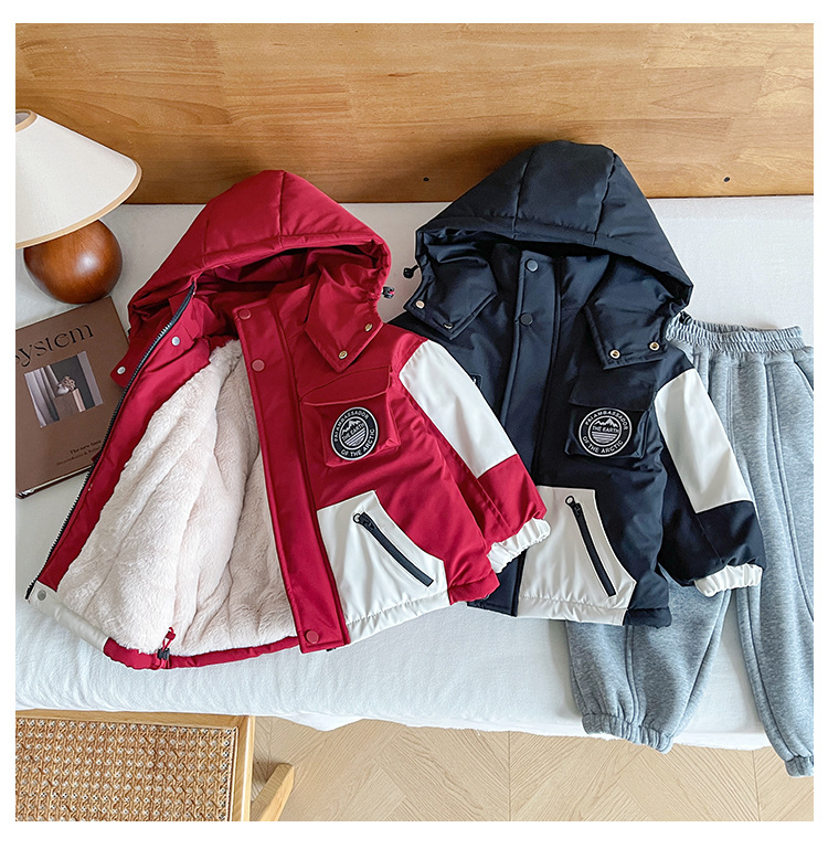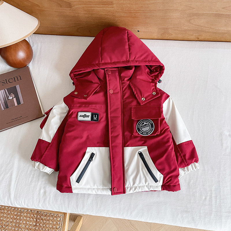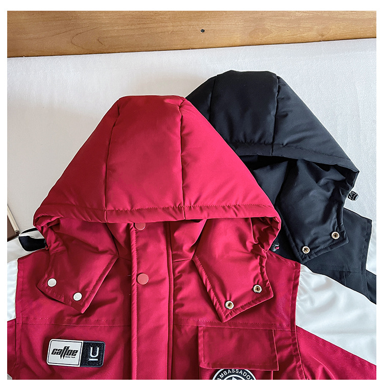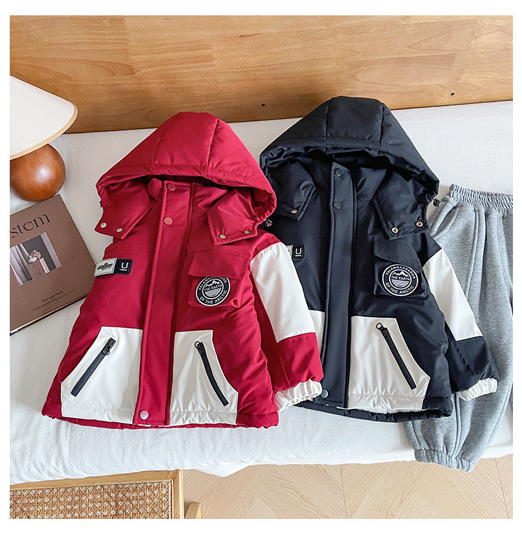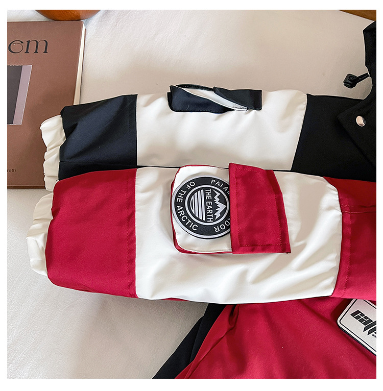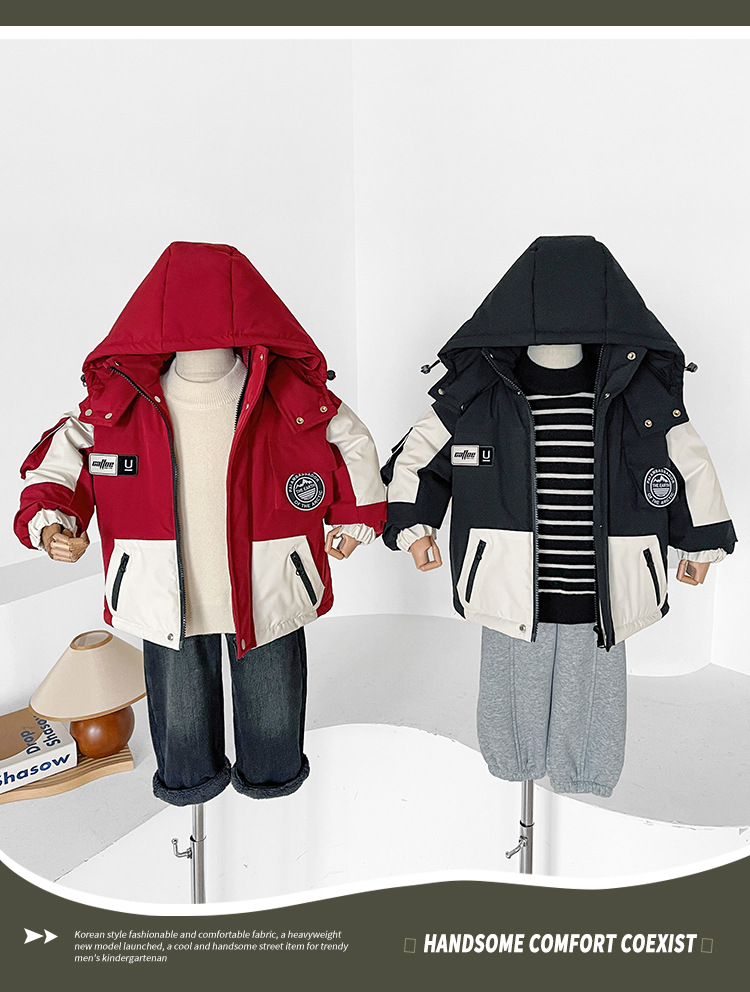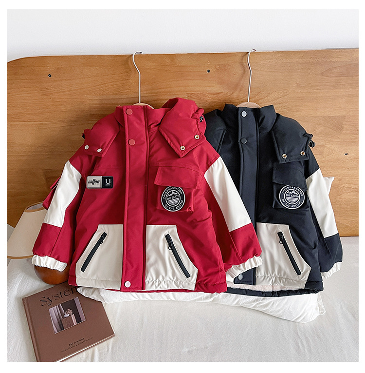 윈드 밸리 2024 겨울 새 아동복 한국식 콘트라스트 컬러 두꺼운 충전 의류 소년 잘 생긴 툴링 코튼 패딩 재킷스토어 가기