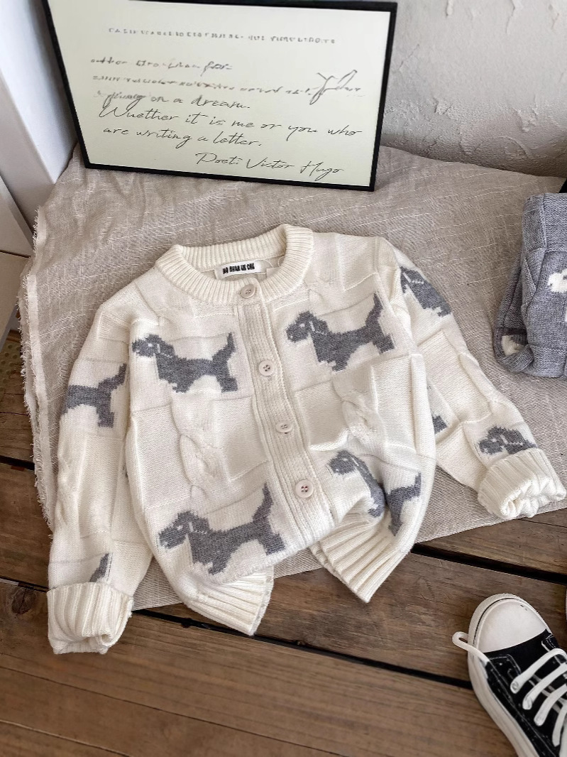 어린이 스웨터 2024 가을과 겨울 새로운 소년과 소녀 캐주얼 게으른 크루 넥 니트 카디건 만화 강아지 코트