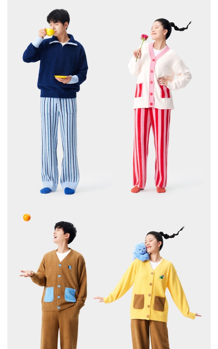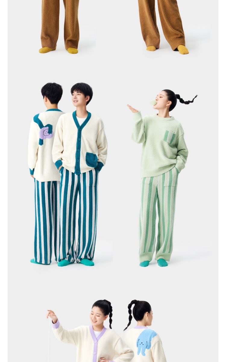 Lie Island Half Velvet 가을과 겨울 새로운 부드러운 따뜻한 여성 잠옷 기모 두꺼운 남녀 홈 옷 커플 세트스토어 가기
