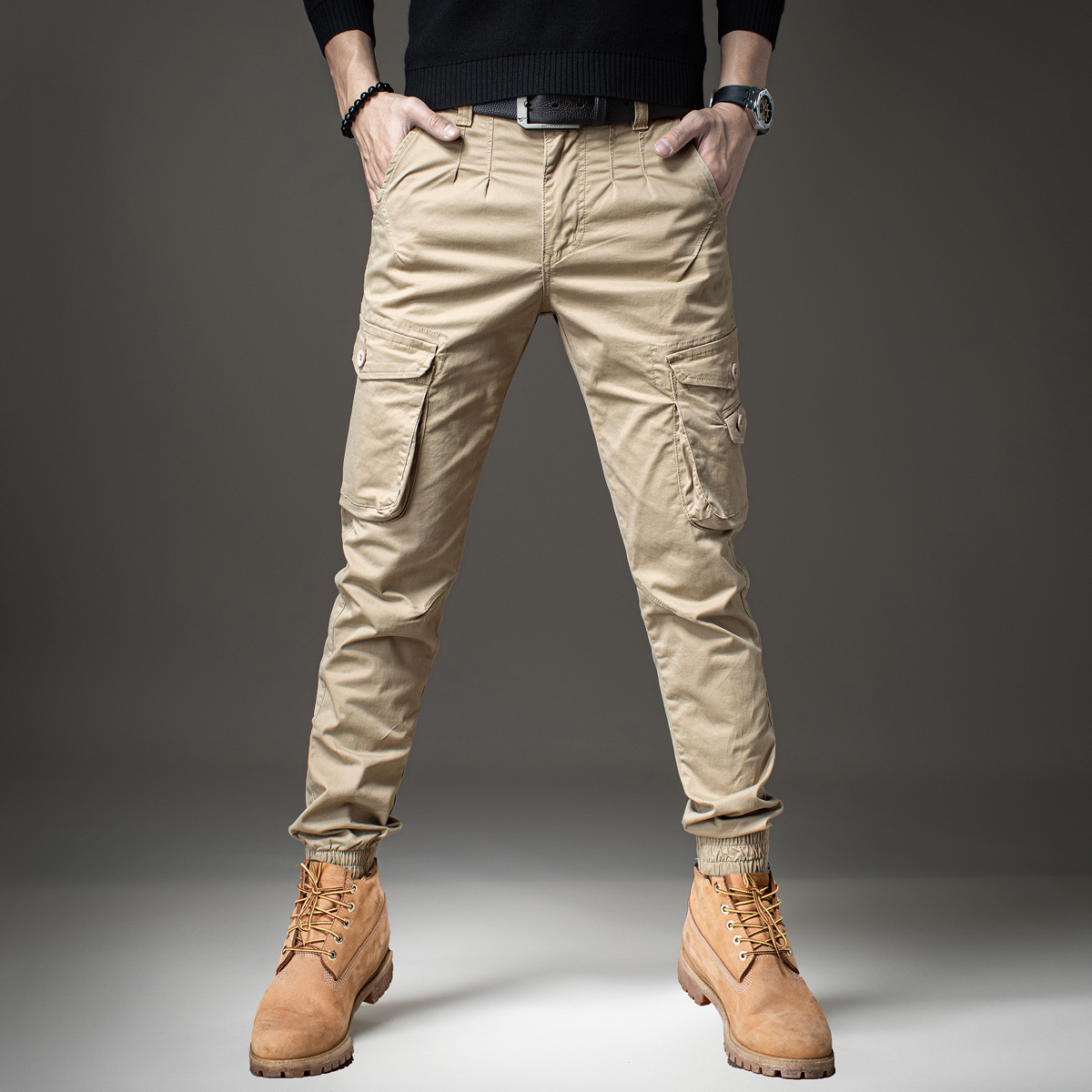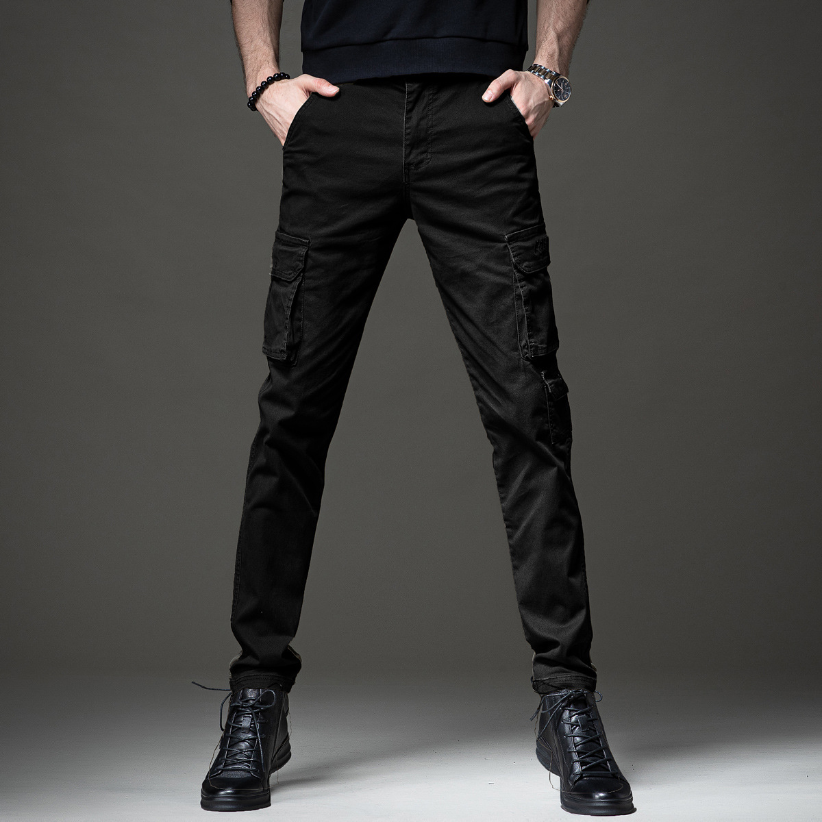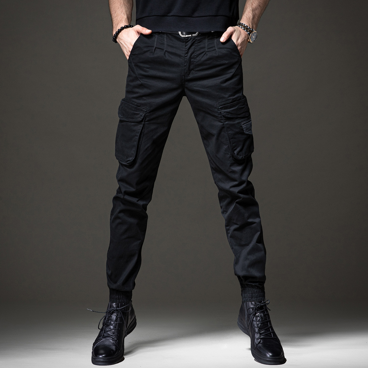 겨울 가을 코일 바지 남성용 트렌디 한 브랜드 가을 슬림 핏 작은 발 멀티 가방 낙하산 바지 남성용 미국 내마모성 캐주얼 바지 남성
