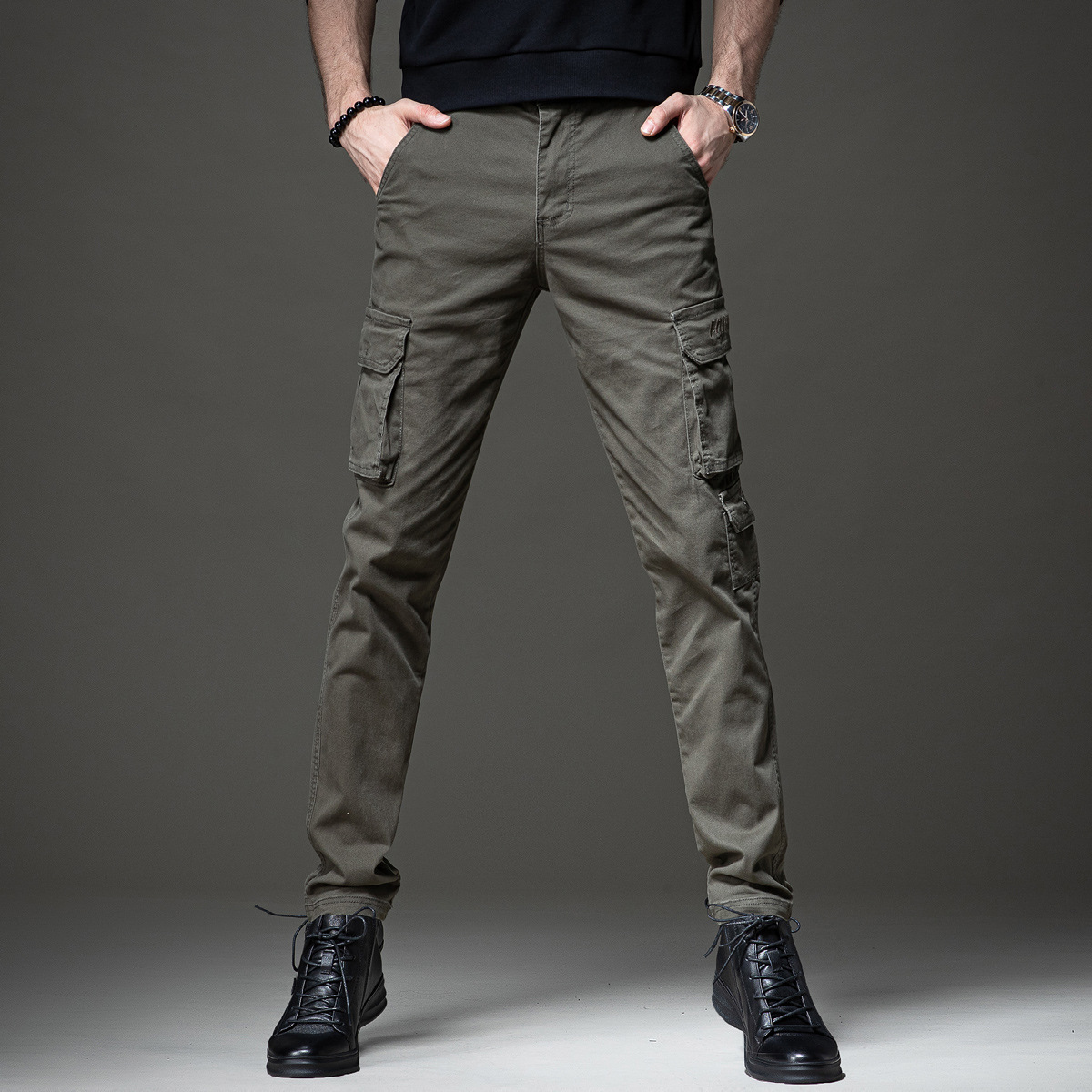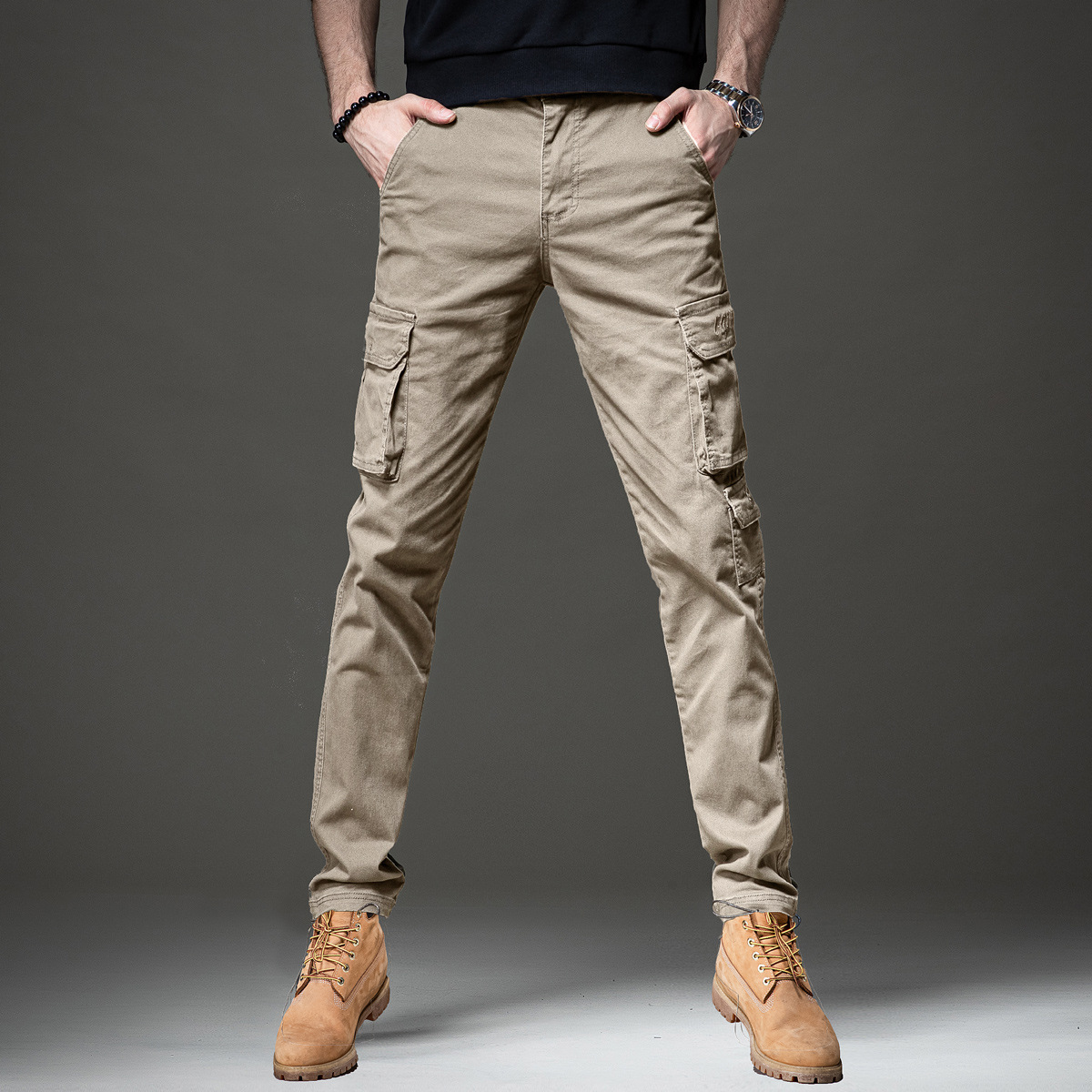 겨울 가을 코일 바지 남성용 트렌디 한 브랜드 가을 슬림 핏 작은 발 멀티 가방 낙하산 바지 남성용 미국 내마모성 캐주얼 바지 남성스토어 가기