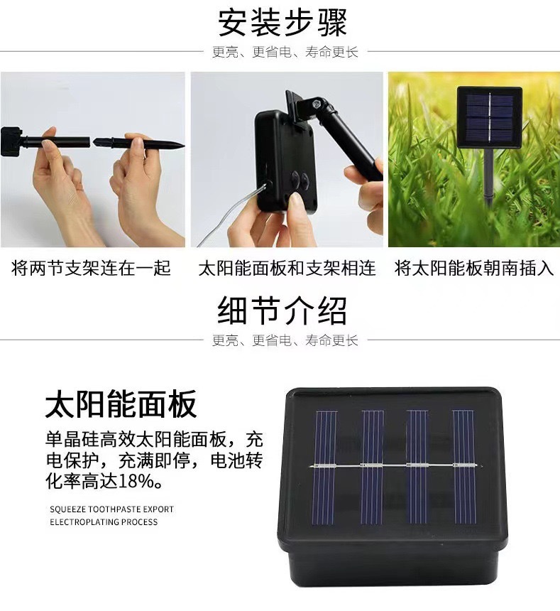 • 12.1m 조명 - 업그레이드된 태양광 패널 리모컨 + USB 충전