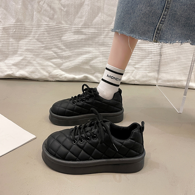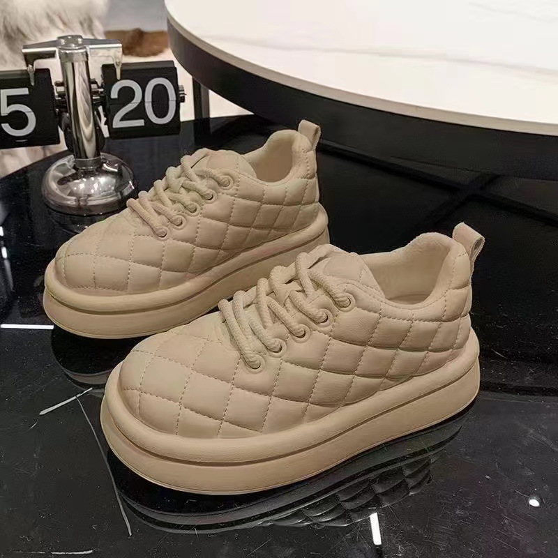 두꺼운 바닥 빵 콩 신발 여성의 가을과 겨울 2024 새로운 봉제 기모 그물 레드 LeFu 면화 캐주얼 화이트 신발스토어 가기