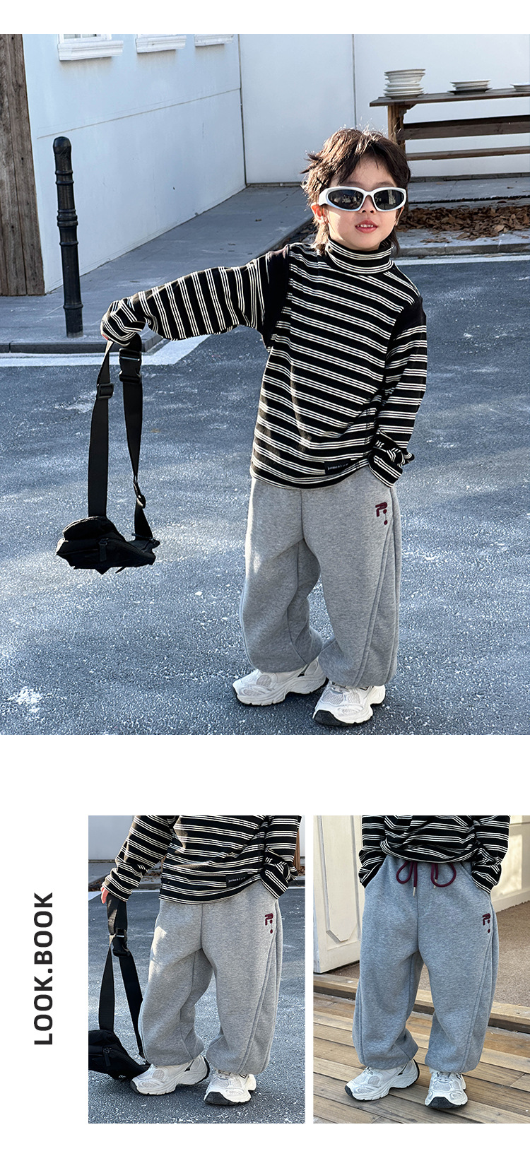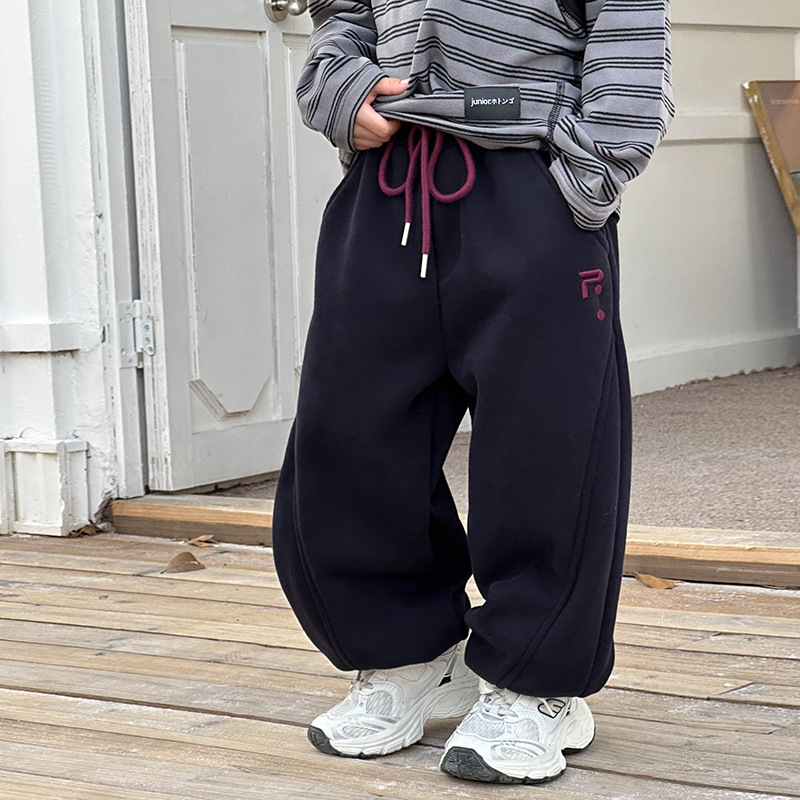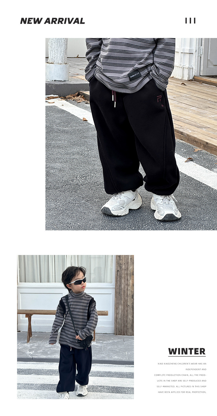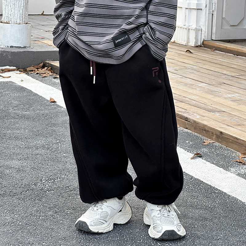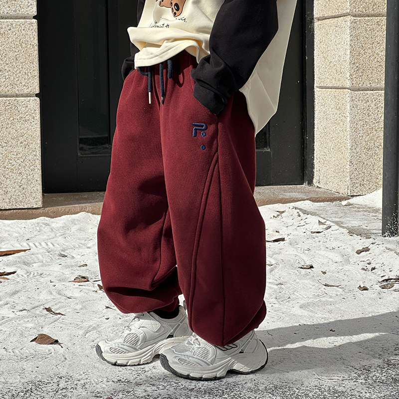 남자 겨울 바지 2024 겨울 새 어린이 한국 스타일 기모 넓은 다리 바지 어린이 올매치 캐주얼 바지스토어 가기