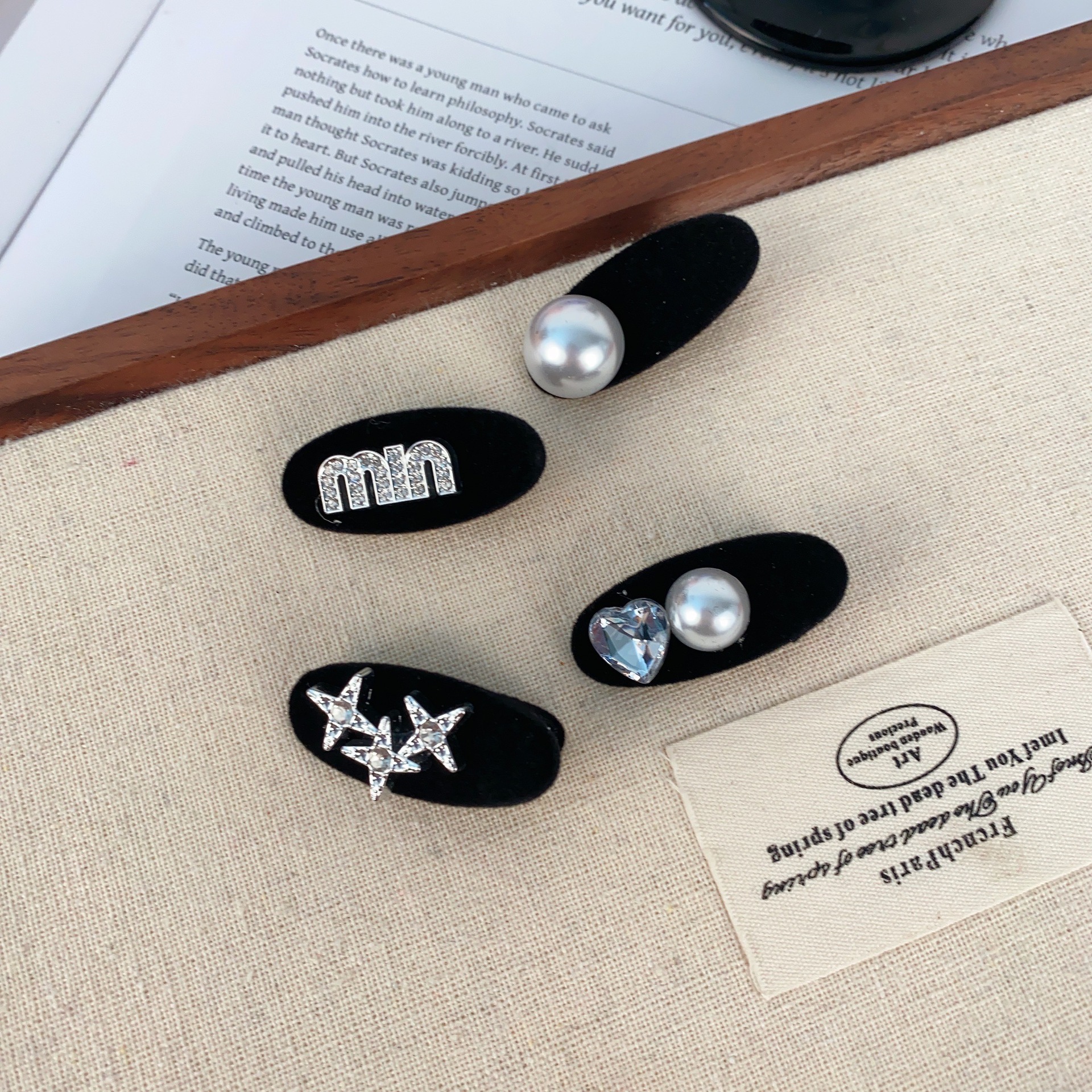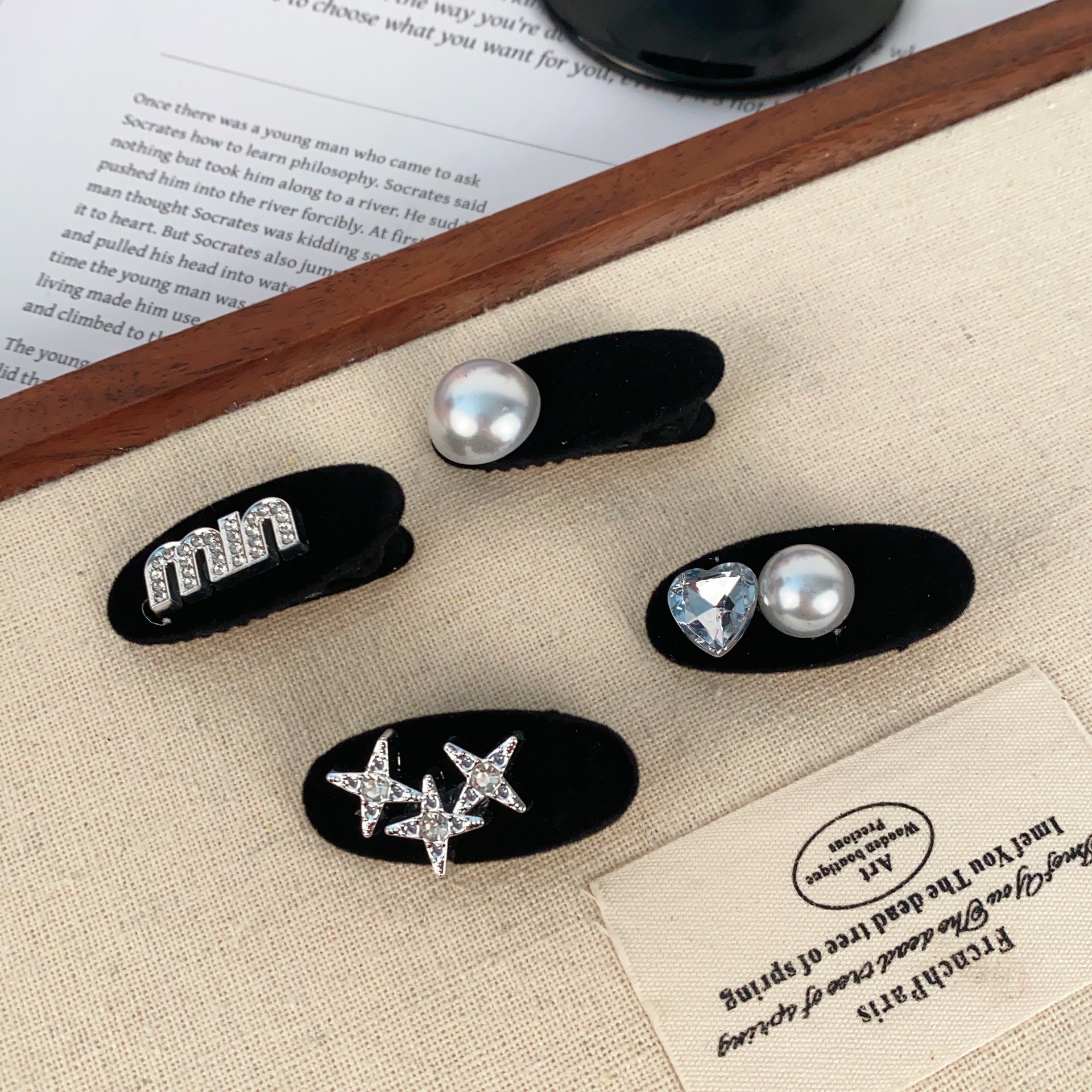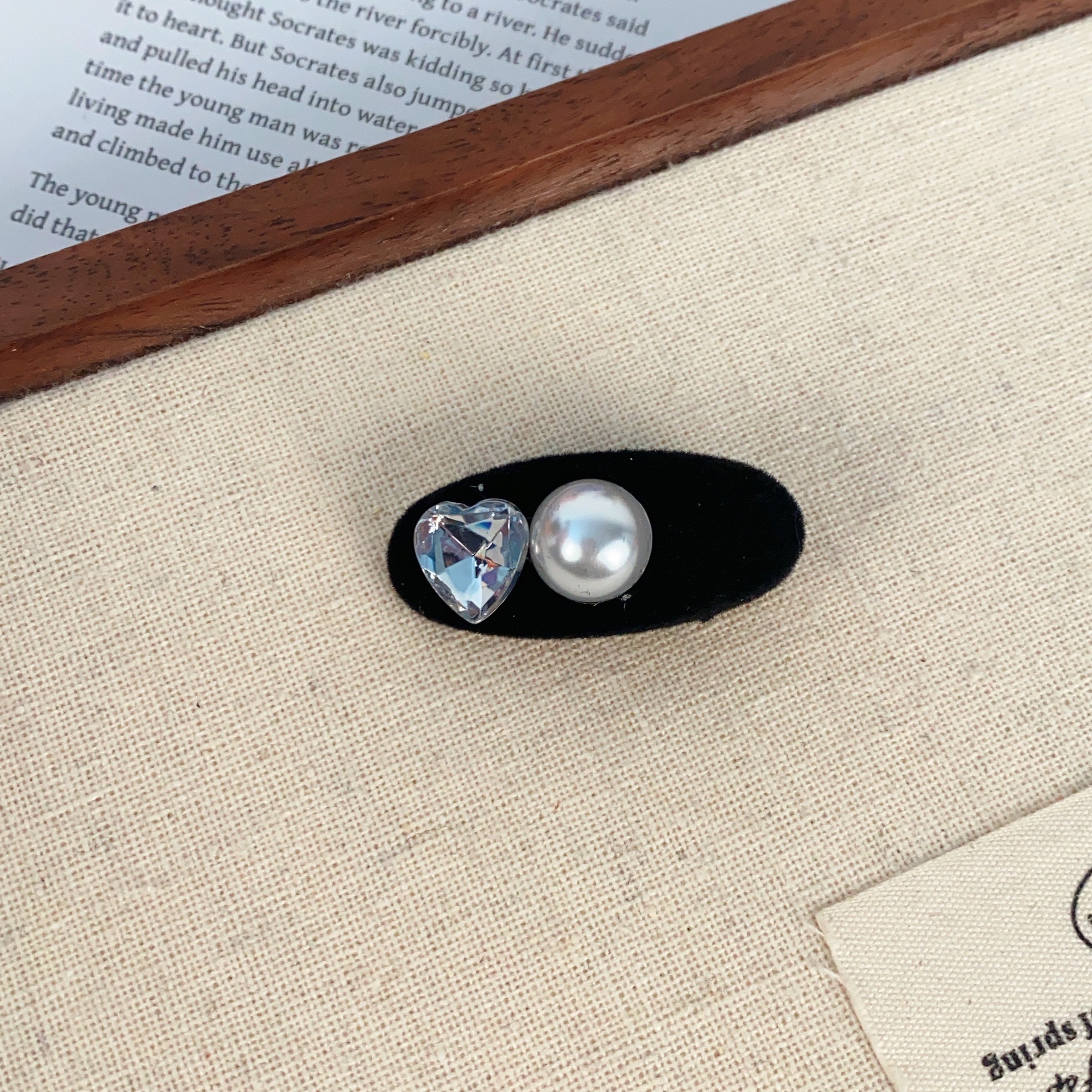 블랙 벨벳 헤어 클립 여성용 라이트 럭셔리 하이 엔드 펄 지르콘 사이드 뱅 클립 틈새 디자인 올 매치 덕빌 클립스토어 가기