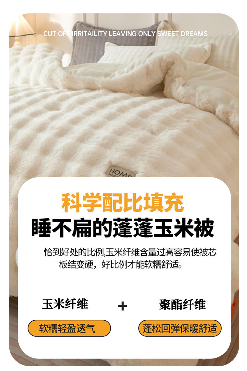 토끼 봉제 이불 옥수수 섬유 이불 코어가 두껍게 따뜻한 겨울 이불 기숙사 단일 우유 벨벳 겨울 봄과 가을 침구