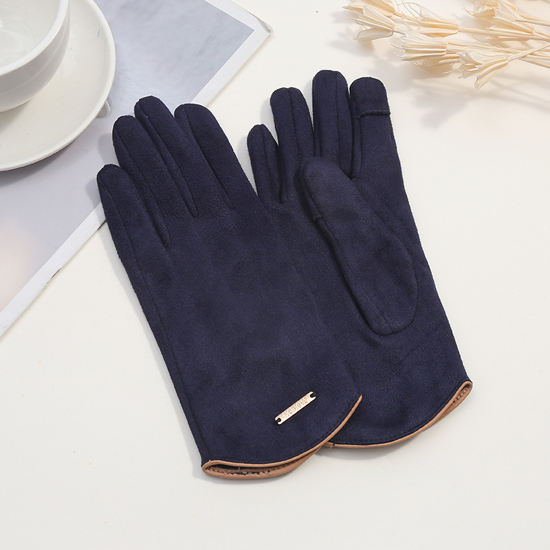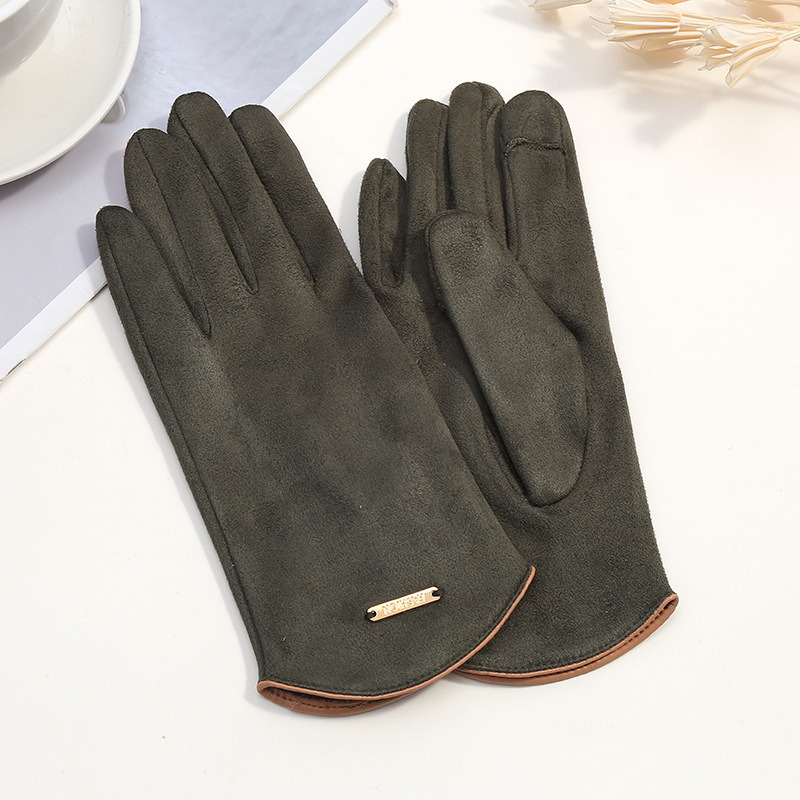 Deerskin 벨벳 남성과 여성의 따뜻한 장갑 기모 냉장 손가락 터치 스크린 장갑 반원형 손목 패션 한국 손