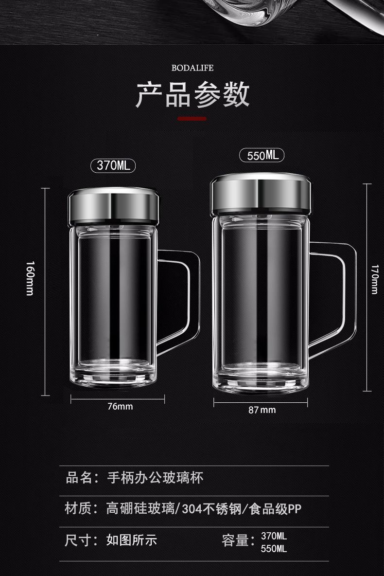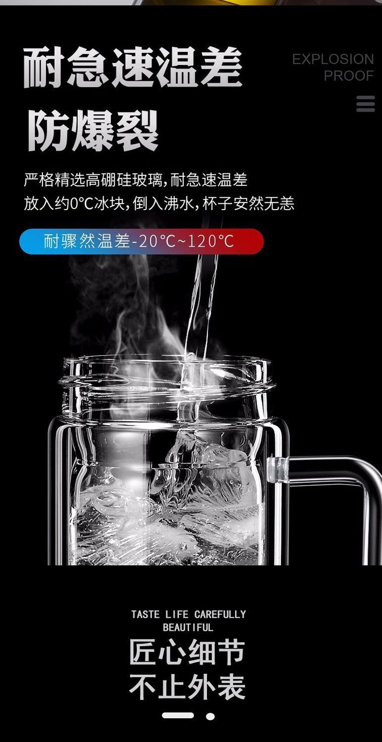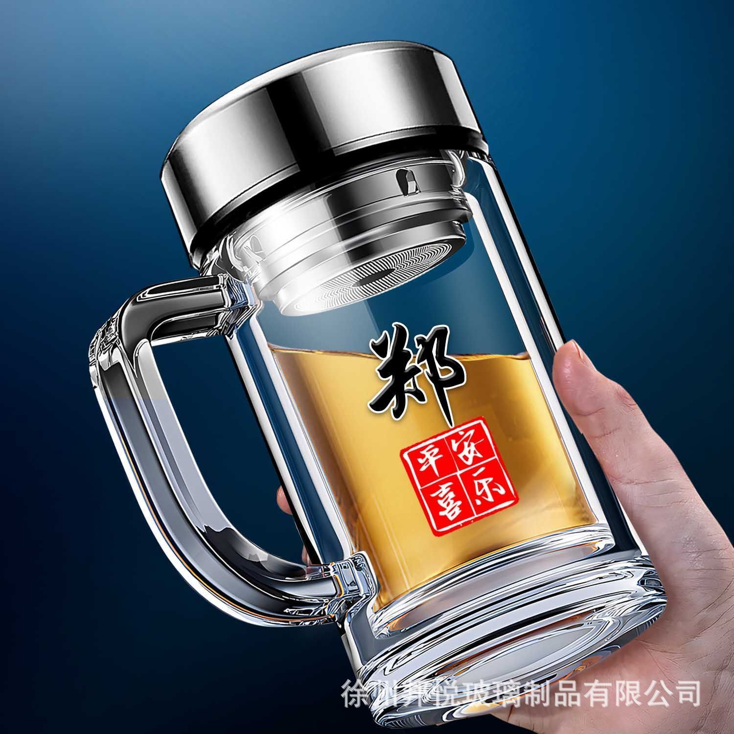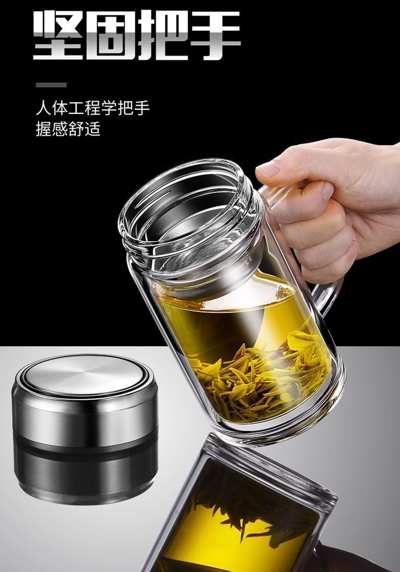 바이 자싱 하이 그레이드 더블 레이어 유리 핸들 티 컵 남자 가정용 고온 저항 식수 오피스 티 컵스토어 가기