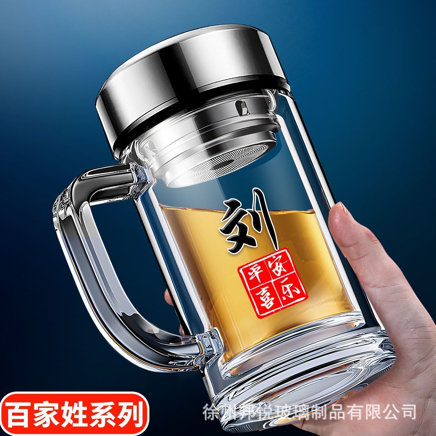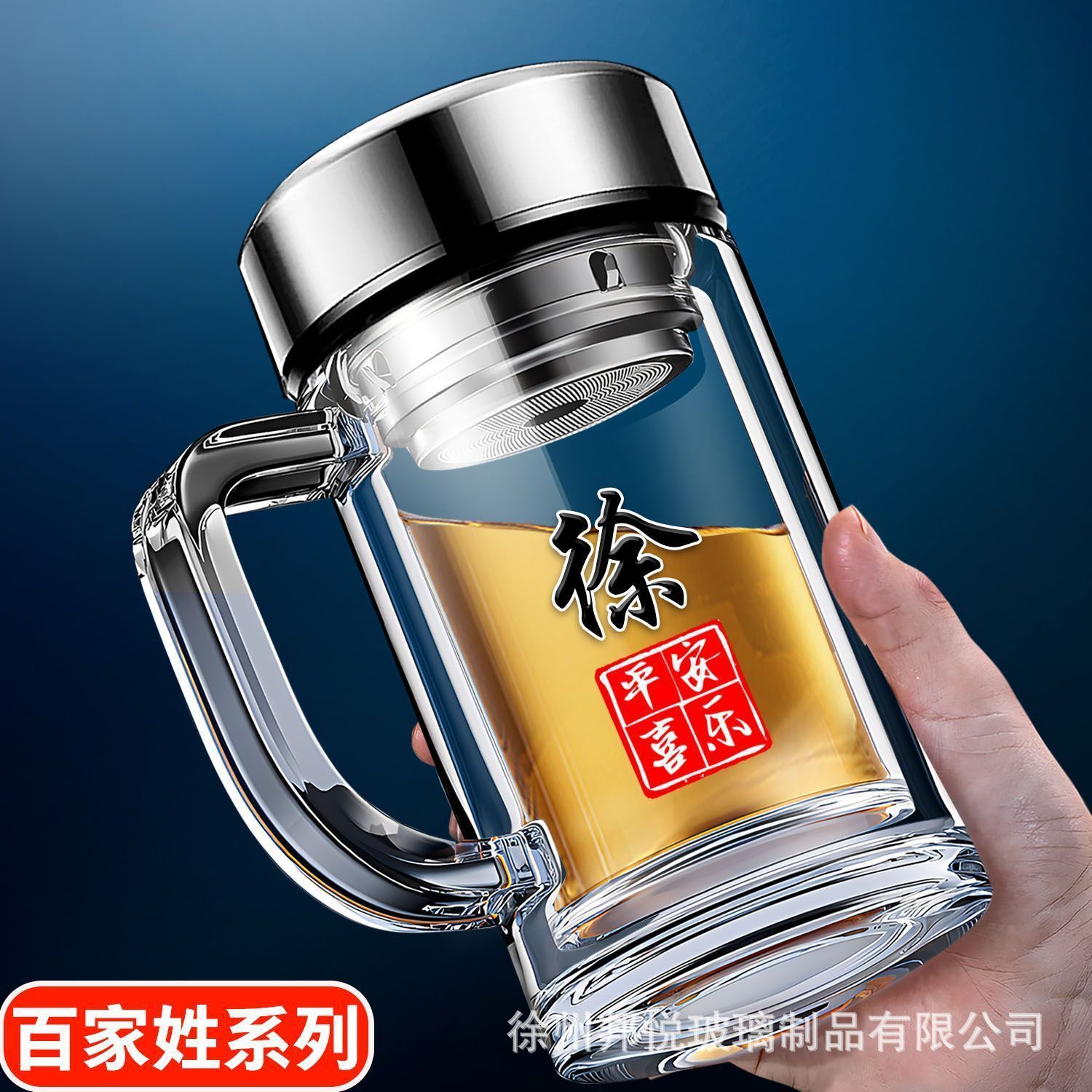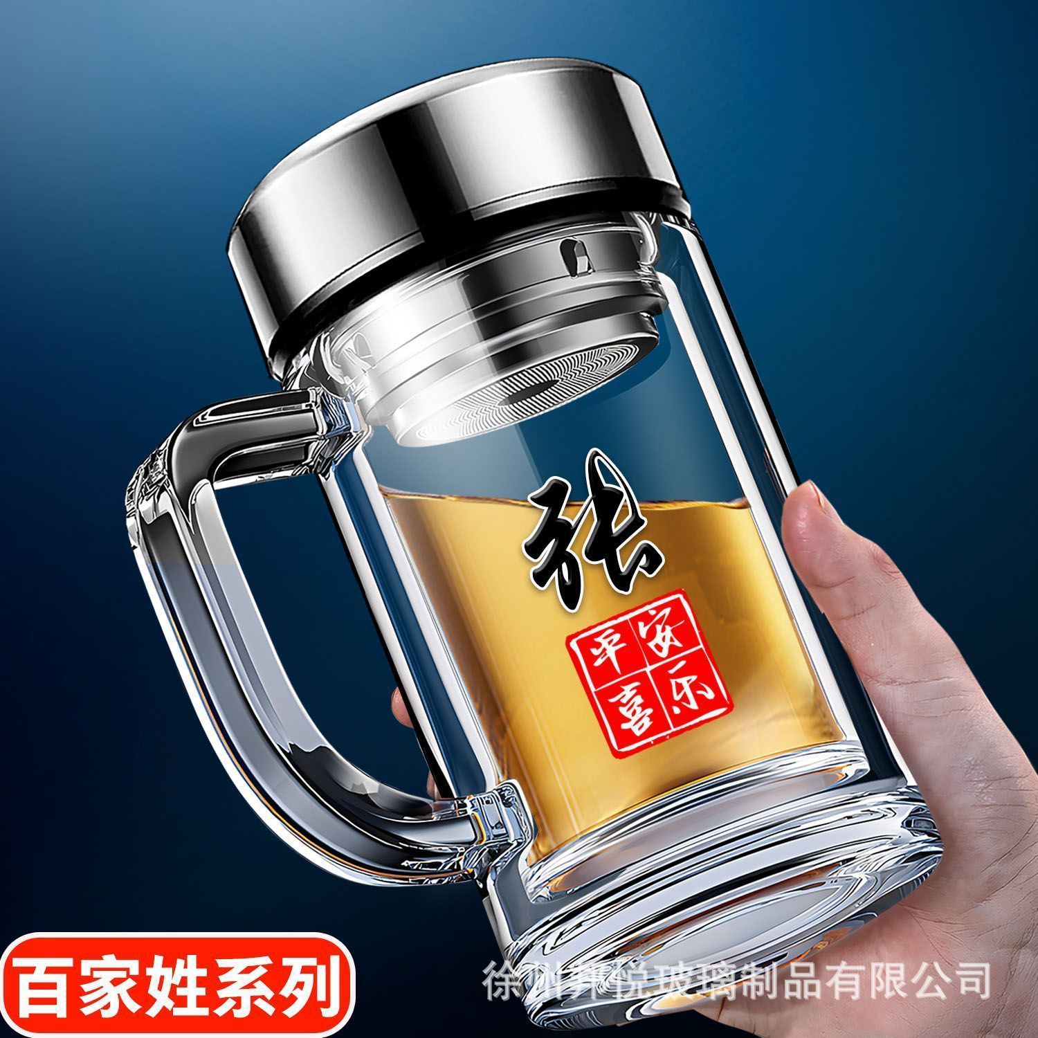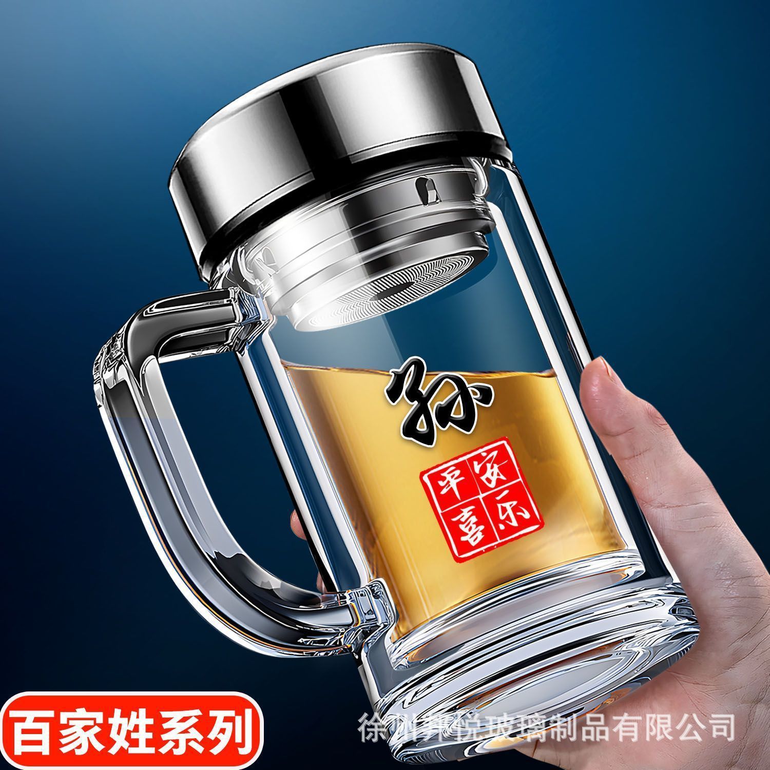 바이 자싱 하이 그레이드 더블 레이어 유리 핸들 티 컵 남자 가정용 고온 저항 식수 오피스 티 컵스토어 가기