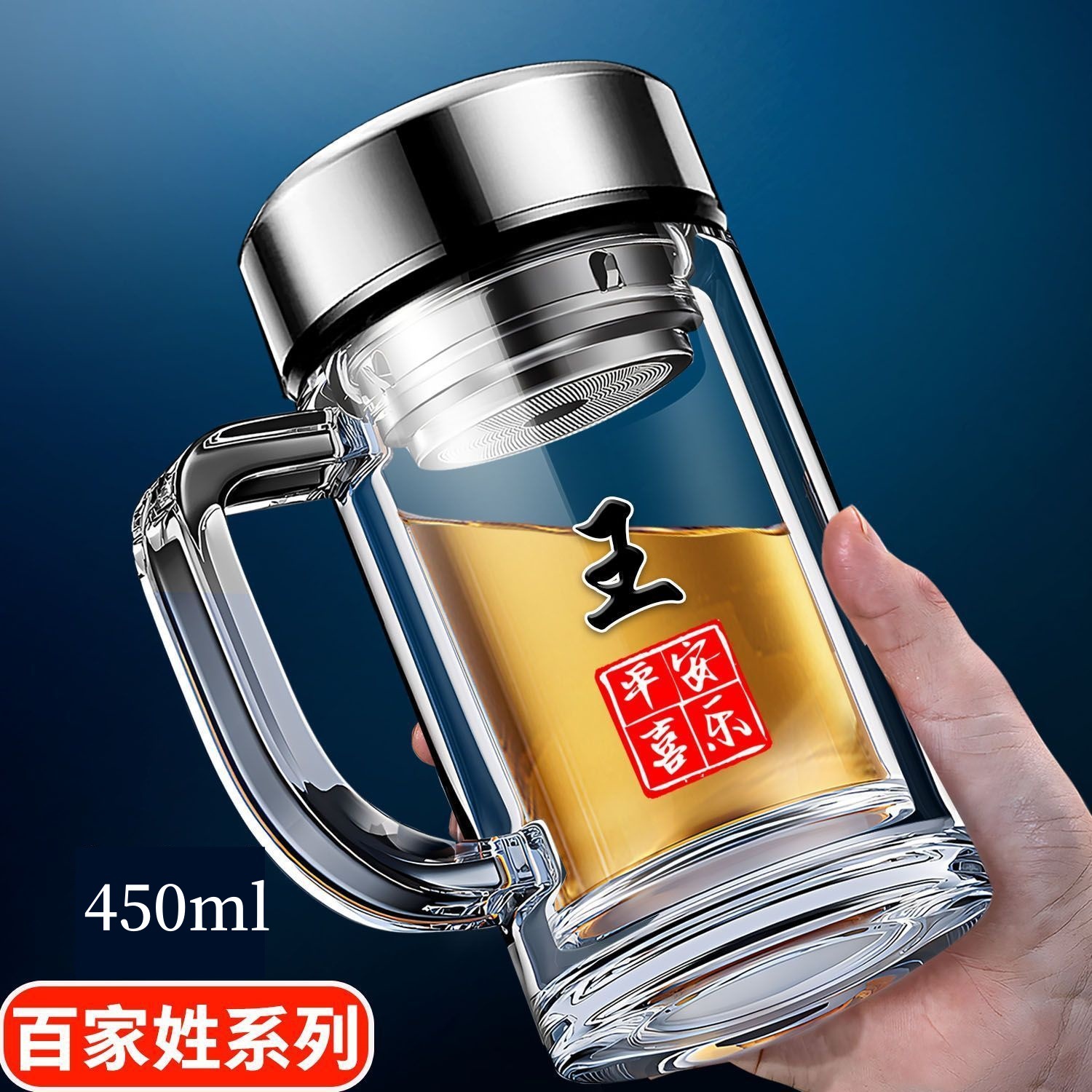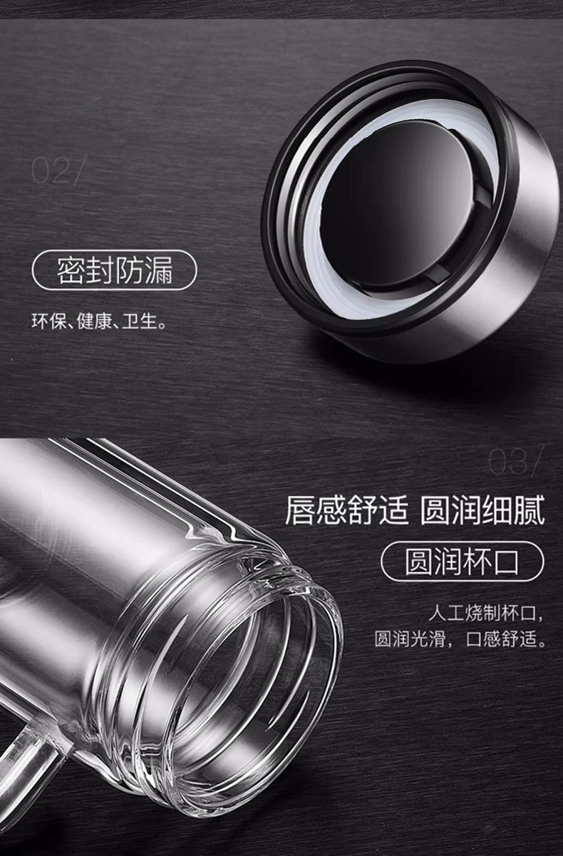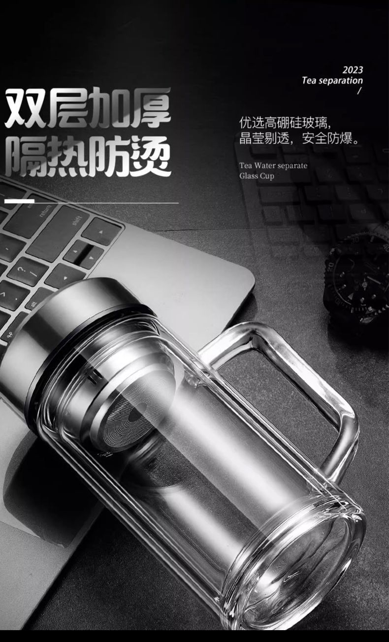 바이 자싱 하이 그레이드 더블 레이어 유리 핸들 티 컵 남자 가정용 고온 저항 식수 오피스 티 컵