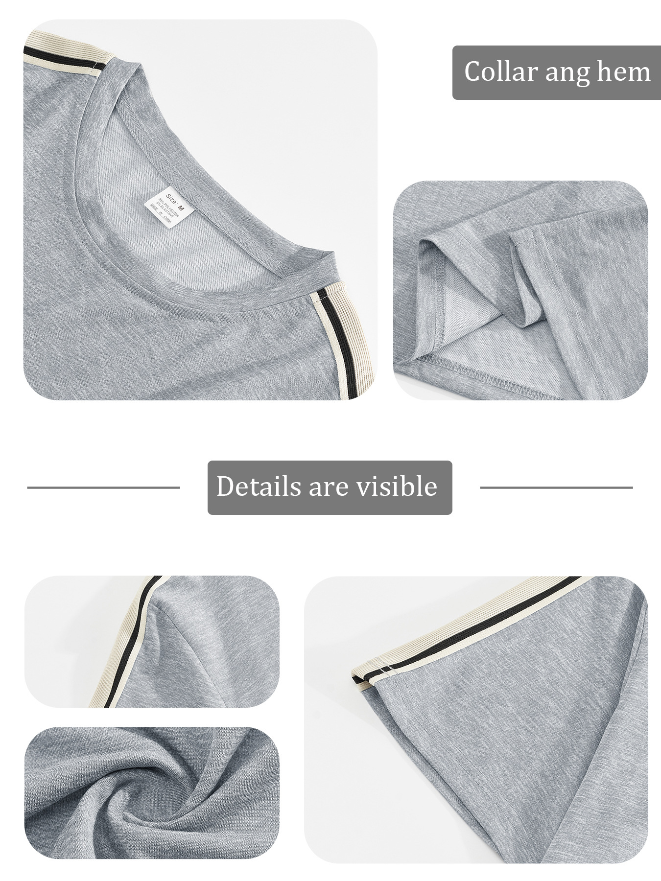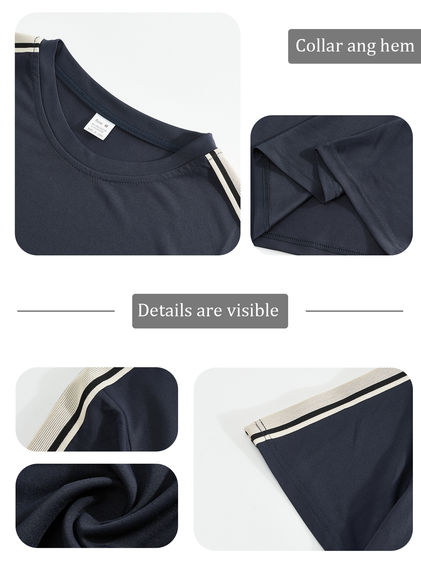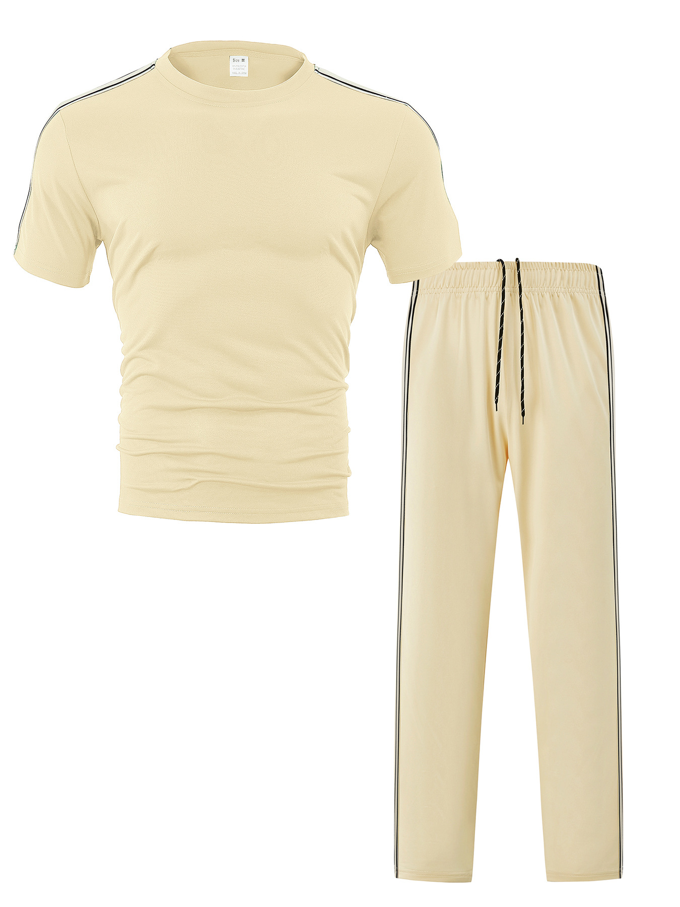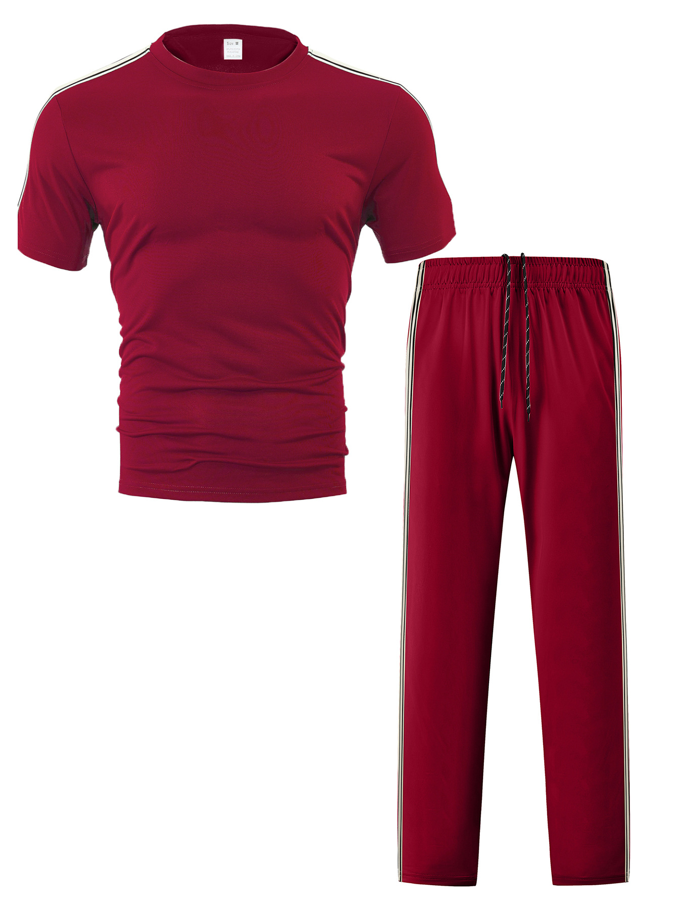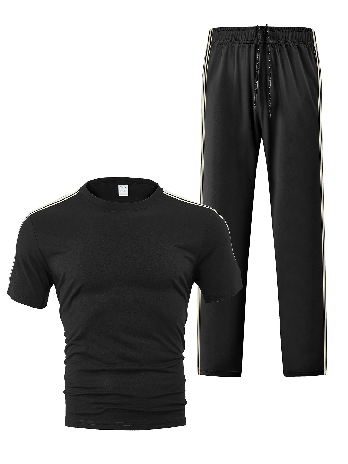 아마존 유럽 및 미국 해외배송 여름 신상 남성 캐주얼 세트, 스트라이프 패턴의 다용도 반팔 긴바지 스포츠 세트