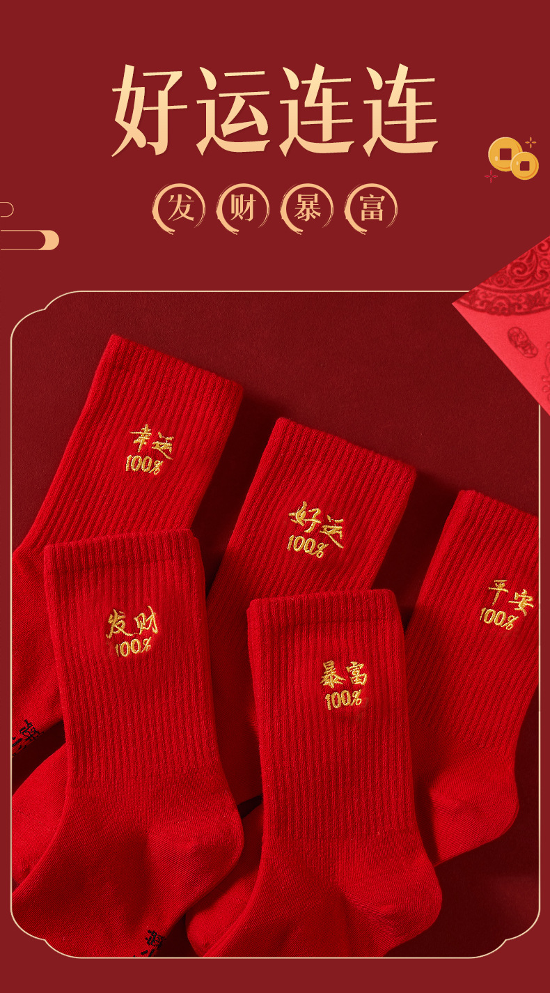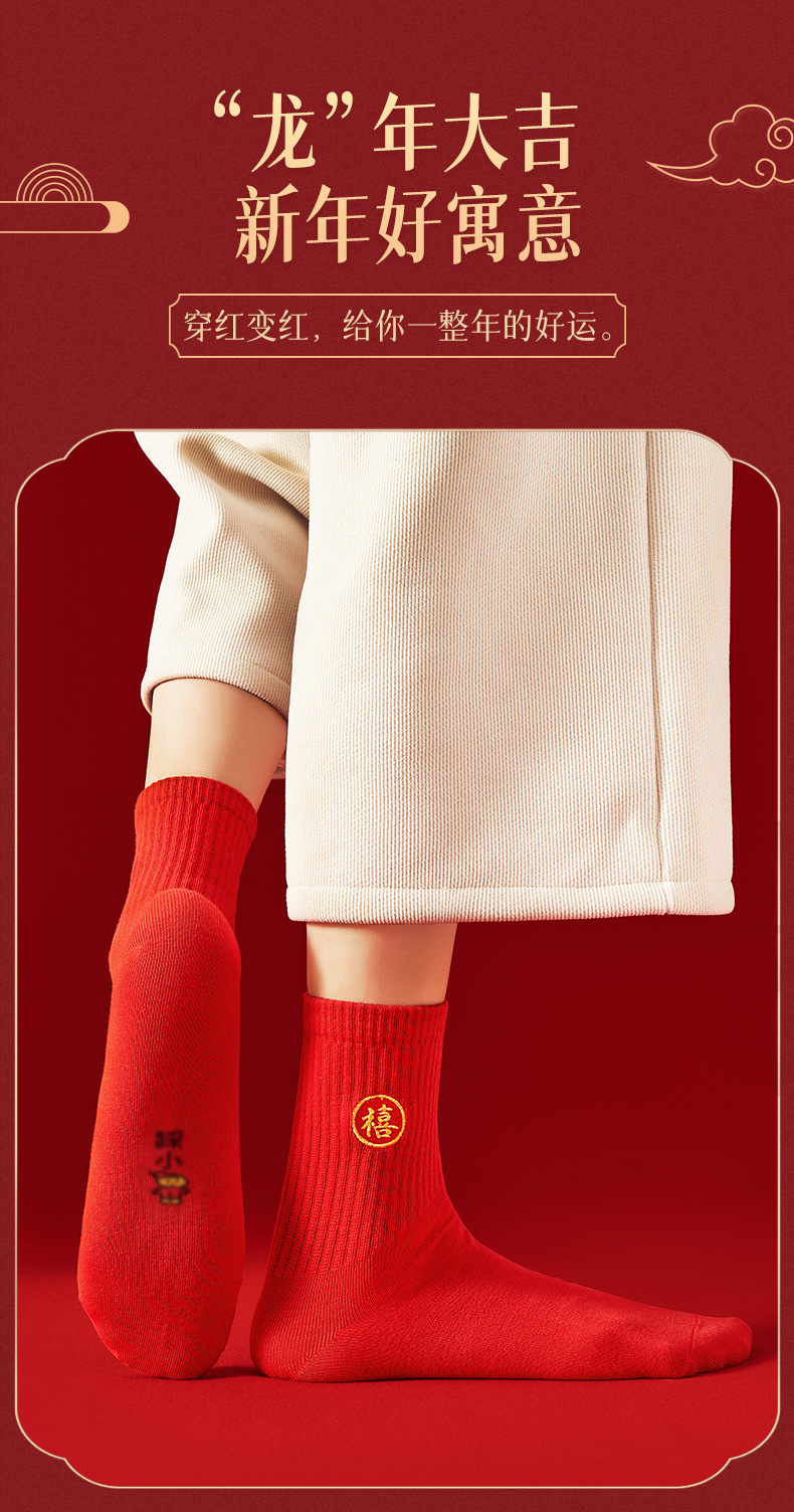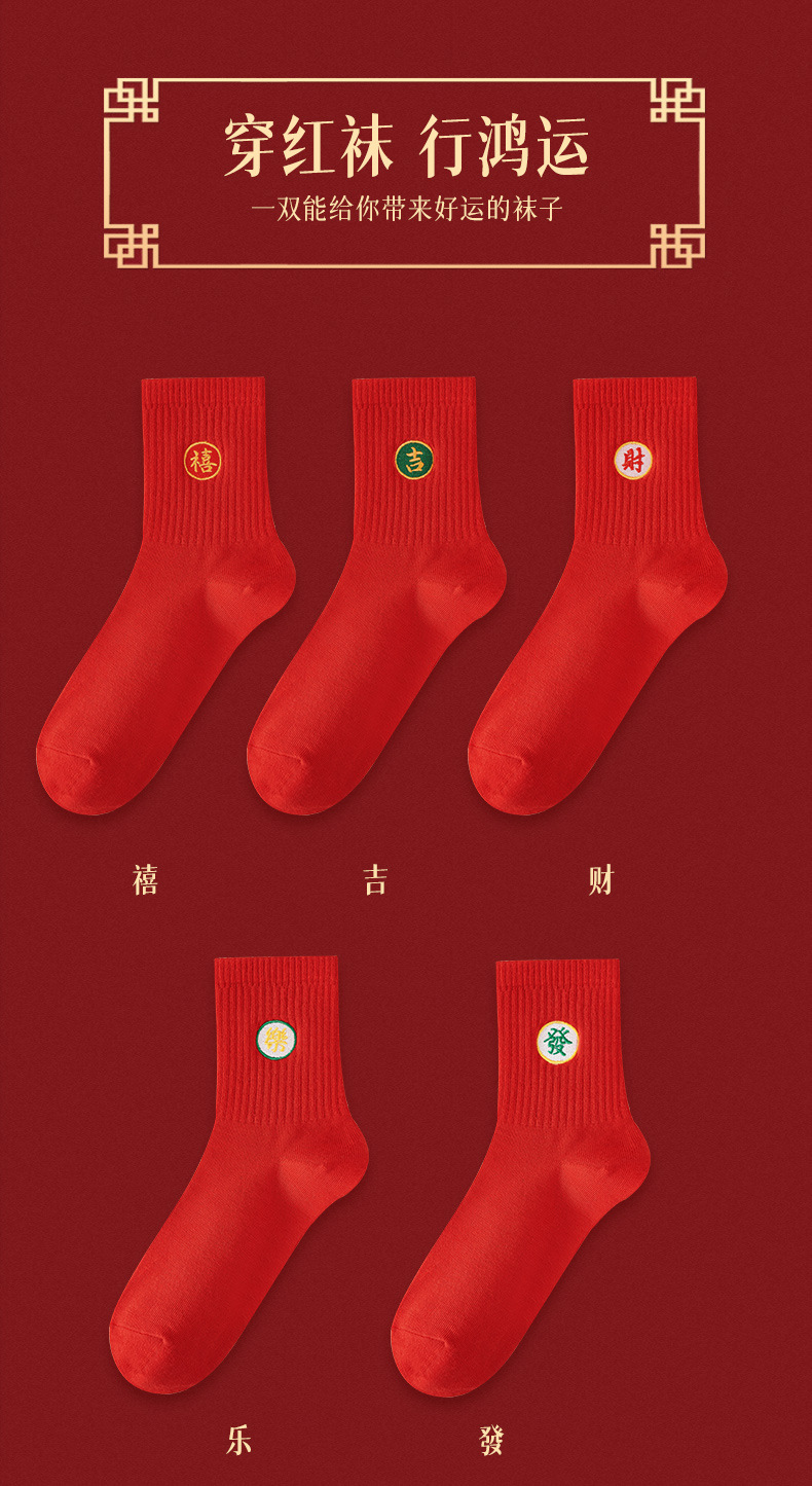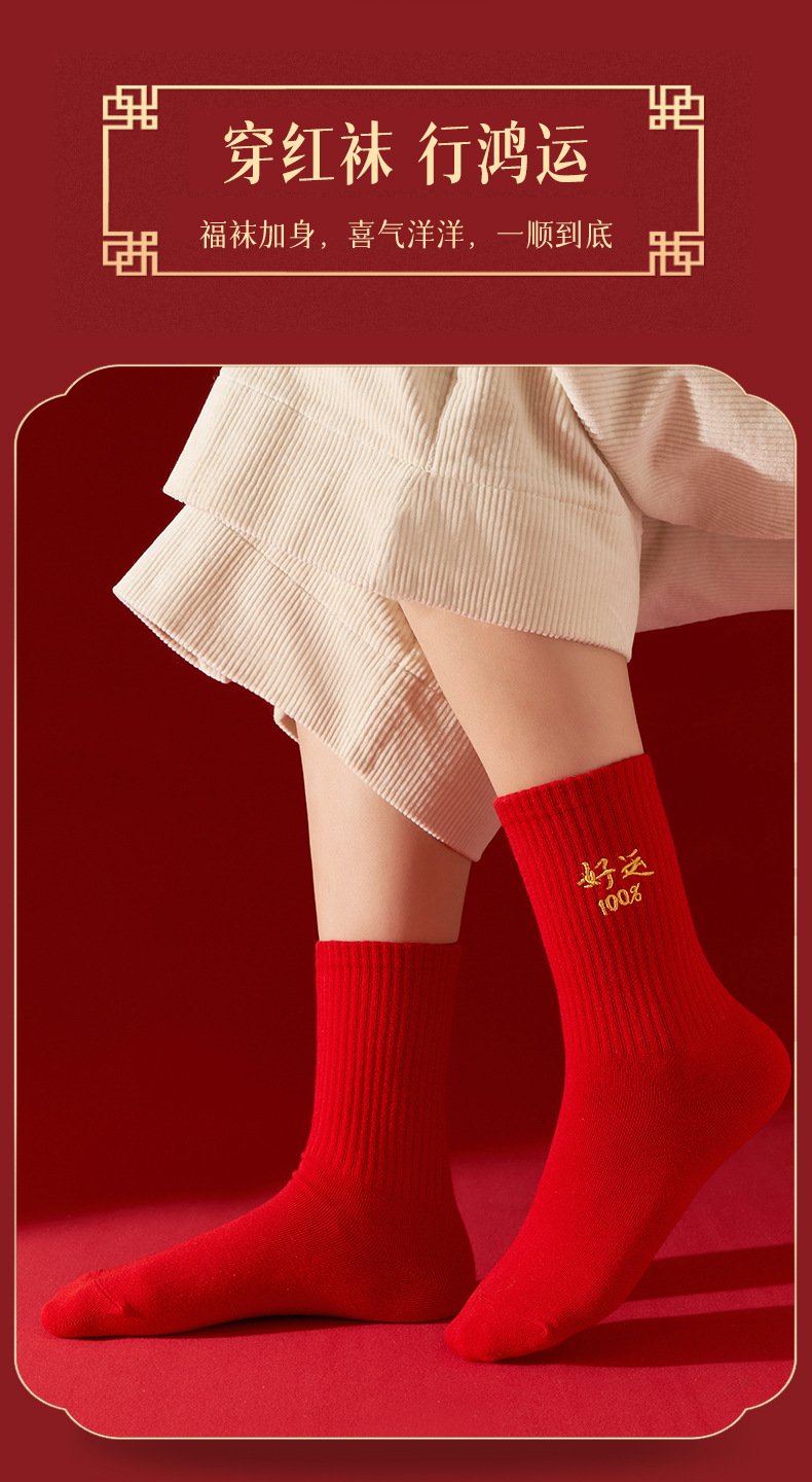 새해 양말 인생의 해 레드 삭스 가을과 겨울 웨딩 양말 뱀 다지 핑 중간 양말 어린이 선물 상자스토어 가기