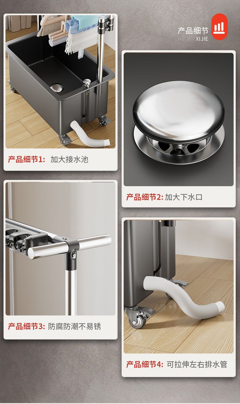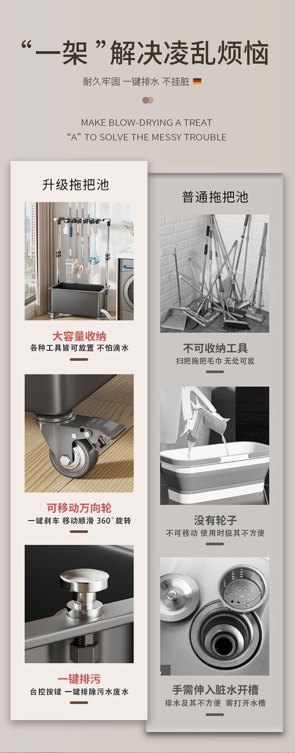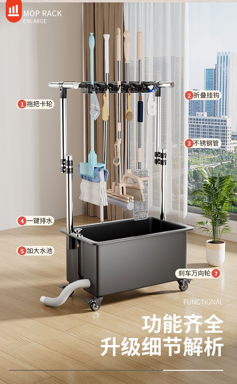 스테인레스 스틸 모바일 걸레 풀 가정용 세탁 풀 바닥 걸레 풀 싱크 발코니 스토리지 랙 상업용 미국 스타일스토어 가기