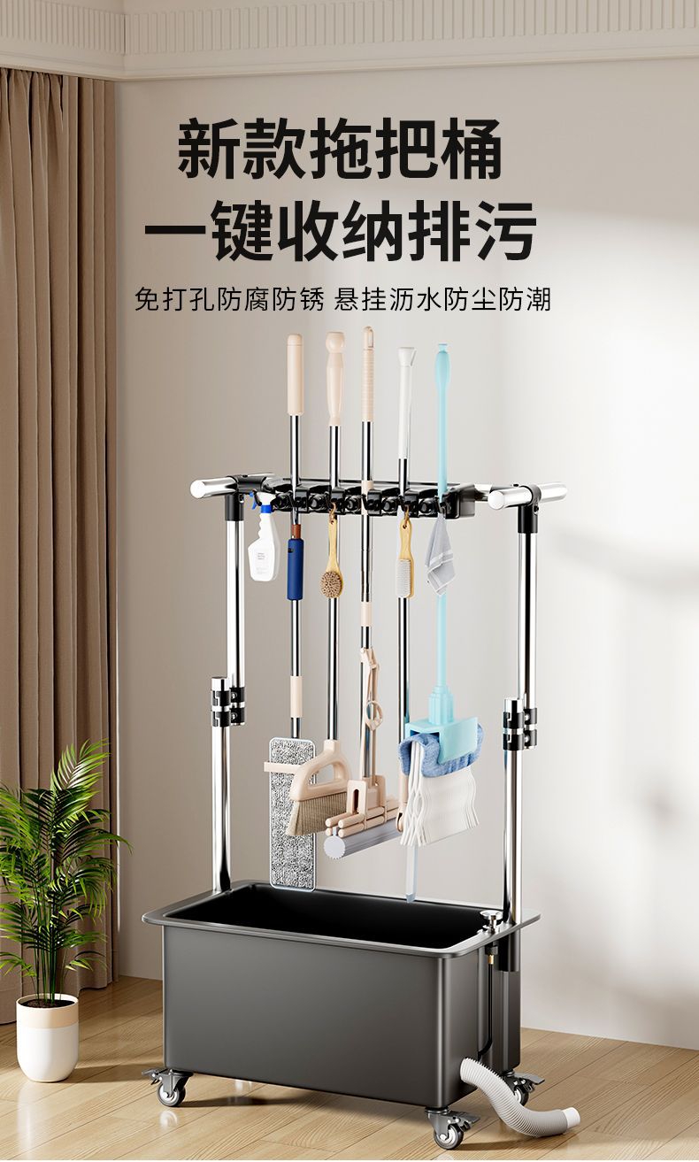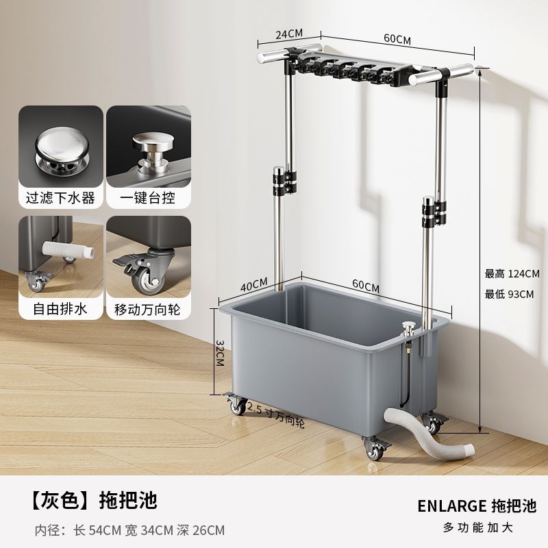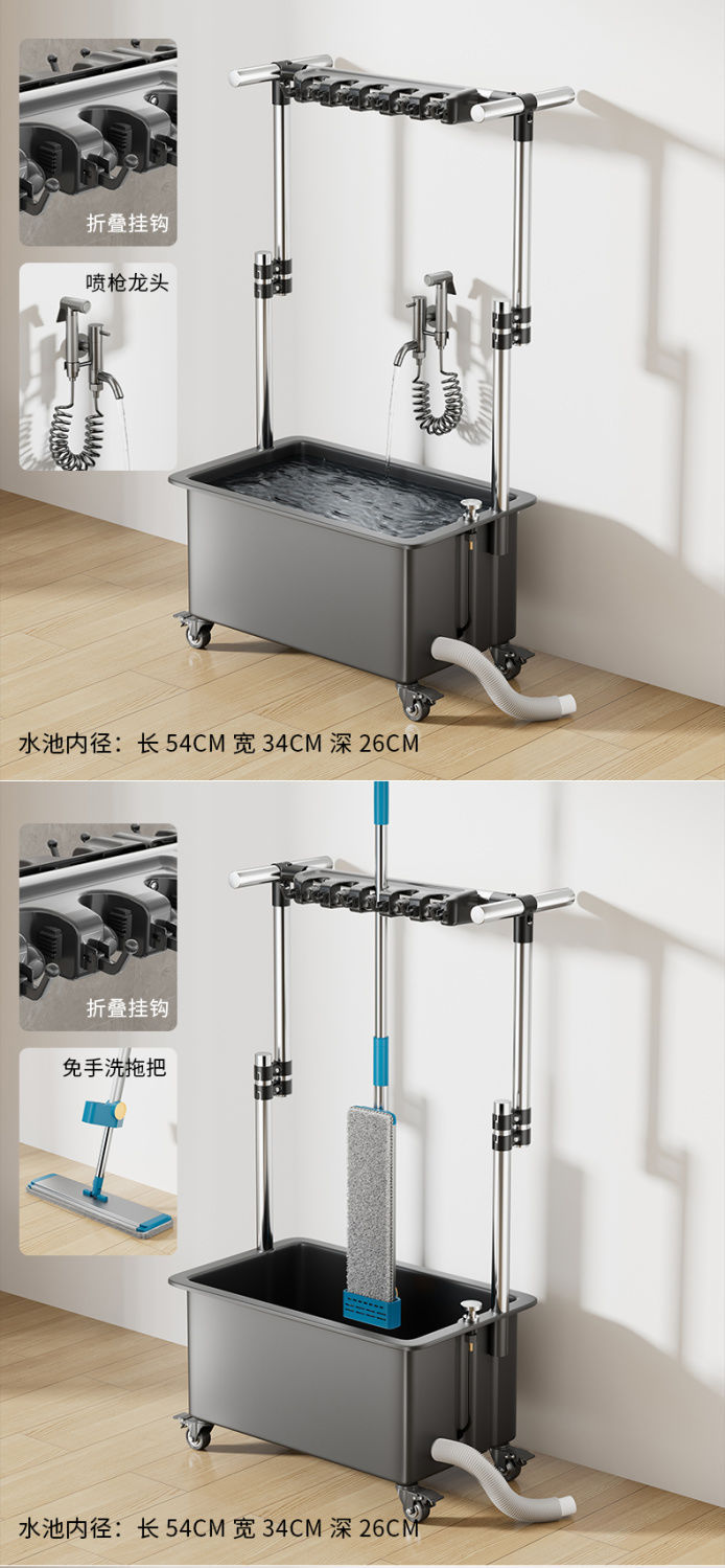 스테인레스 스틸 모바일 걸레 풀 가정용 세탁 풀 바닥 걸레 풀 싱크 발코니 스토리지 랙 상업용 미국 스타일