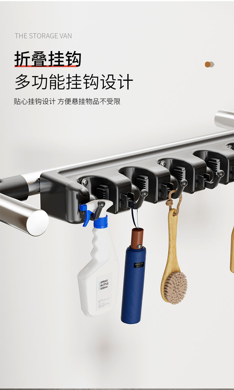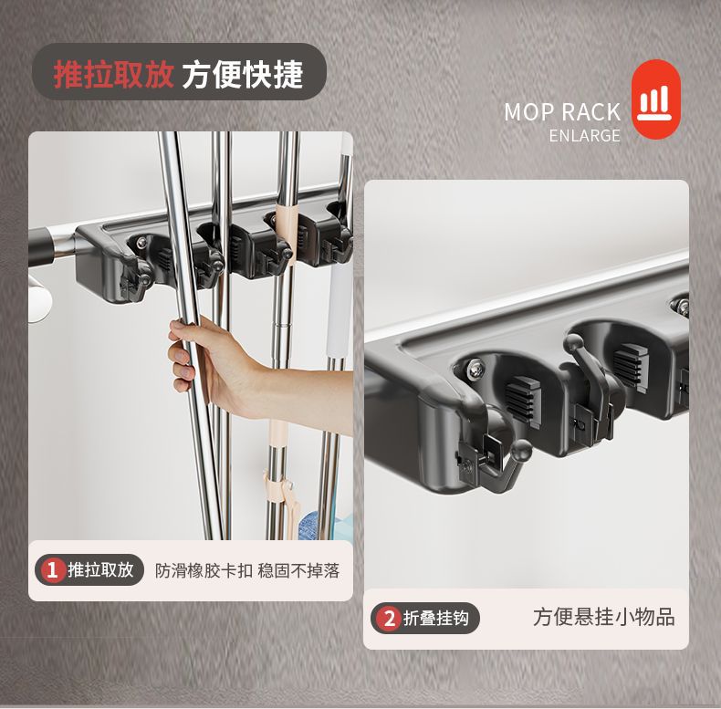• 걸레 홀더 5개, 후크 6개, 높이 조절 가능, 검정색