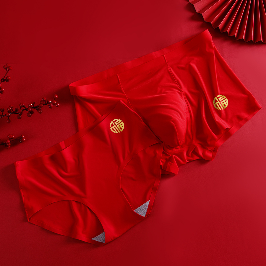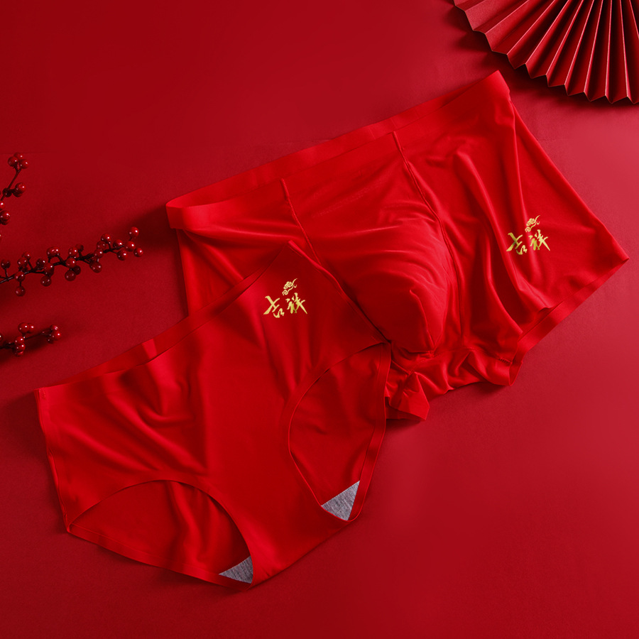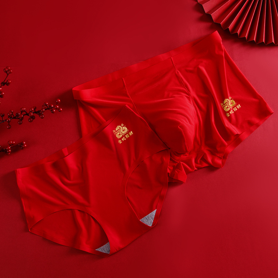 한 남자와 한 여자 트라이앵글 커플 통기성 복서 추적없는 반바지 머리 뱀 얼음 실크의 빨간 년 커플스토어 가기