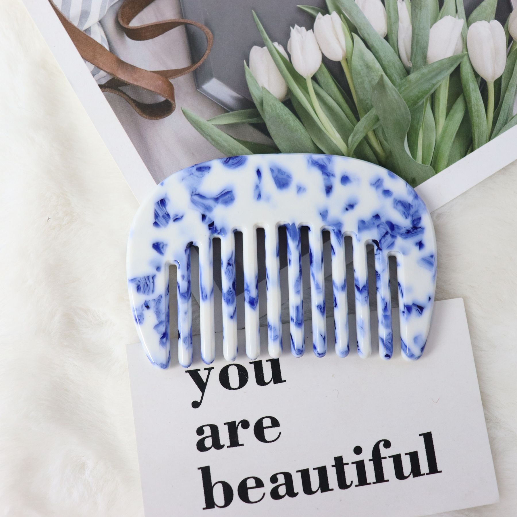 Zhendong 쥬얼리 일본과 한국 스타일 간단한 대리석 질감 아세트산 U 자형 헤어 빗 소녀의 헤드웨어 헤어 휴대용 빗
