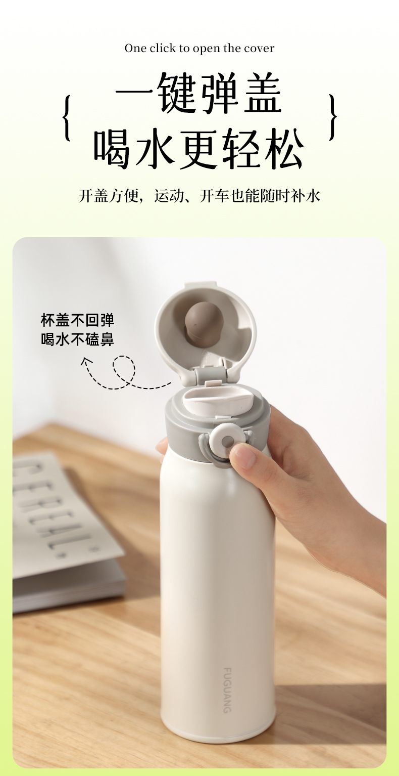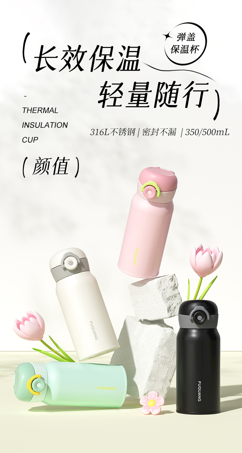 Fuguang 바운스 보온병 컵 여자 하이 얀 가치 316L 스테인레스 스틸 어린이 워터 컵 학생 컵 남자 그룹 구매 도매