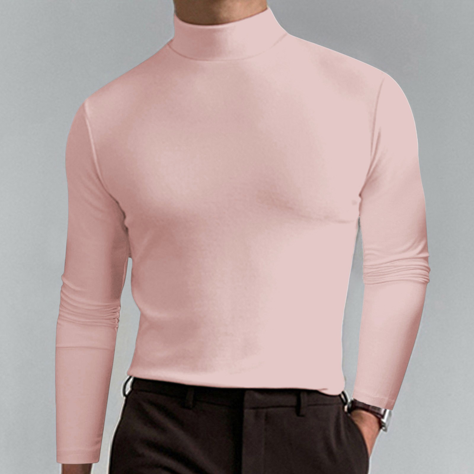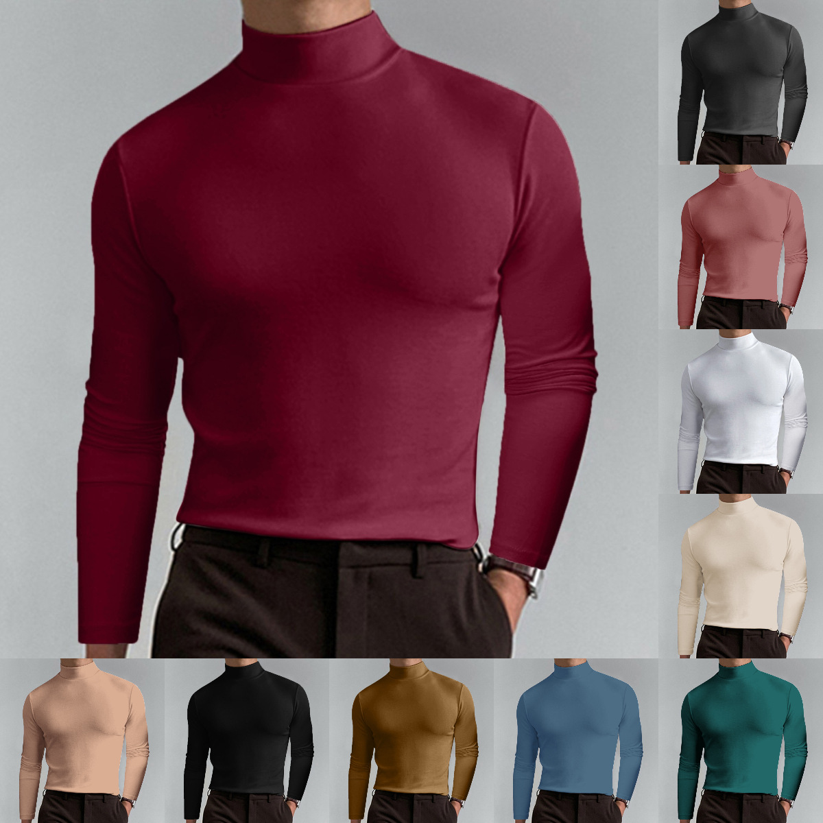 국경 간 남성용 긴팔 헤비 스트레치 티셔츠 남성용 퓨어 코튼 탑 통기성 패션 세미 하이 칼라베이스 셔츠 남성스토어 가기