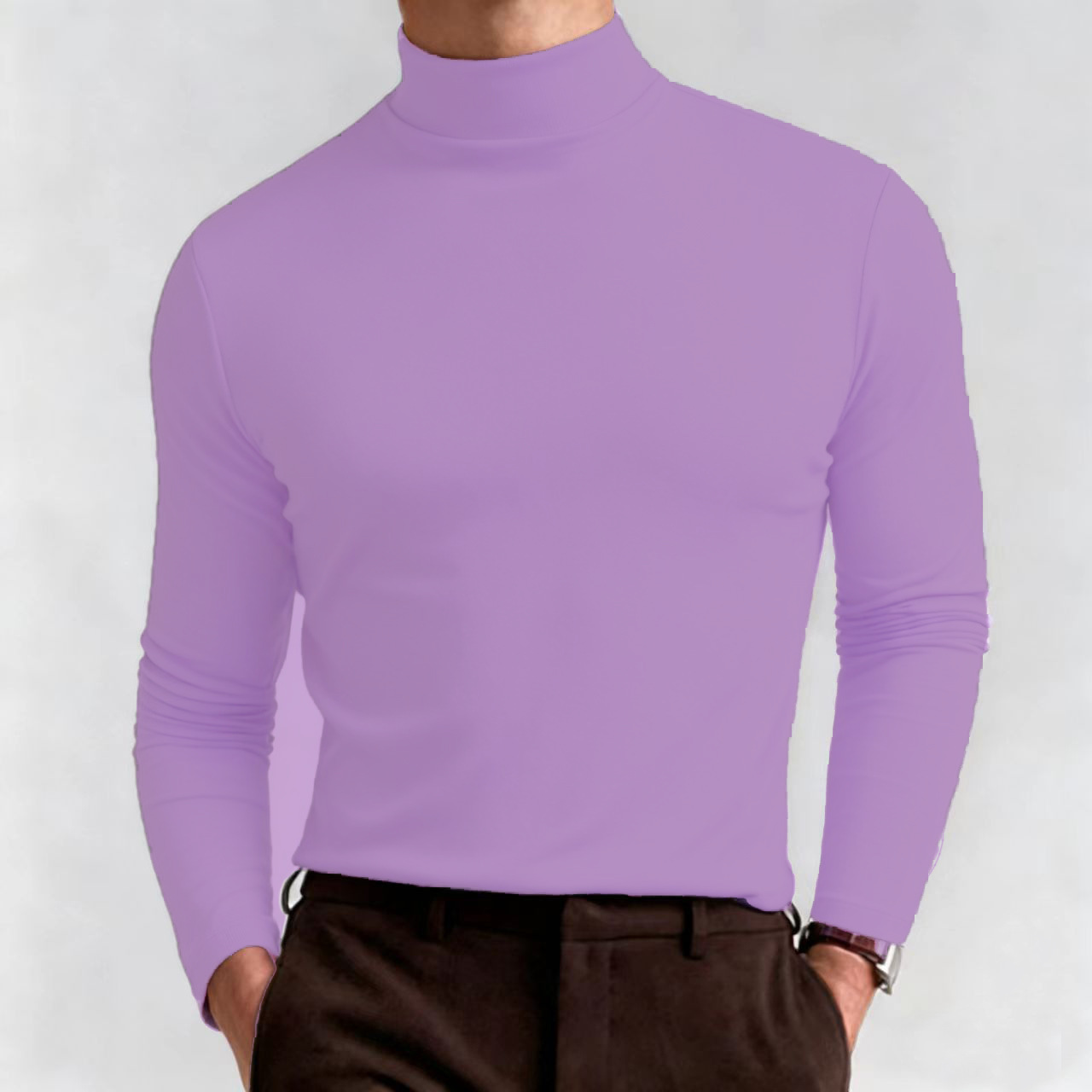 국경 간 남성용 긴팔 헤비 스트레치 티셔츠 남성용 퓨어 코튼 탑 통기성 패션 세미 하이 칼라베이스 셔츠 남성
