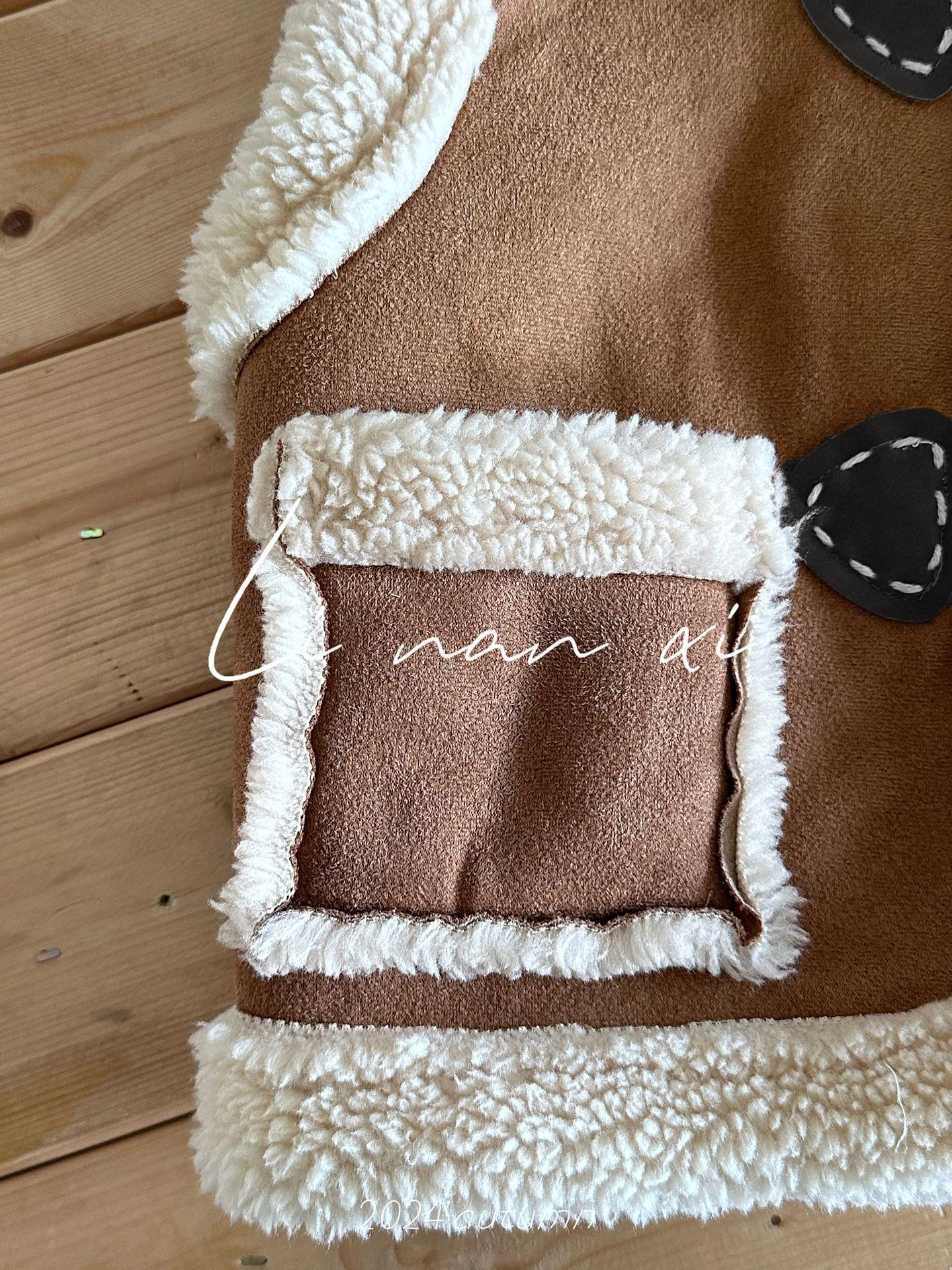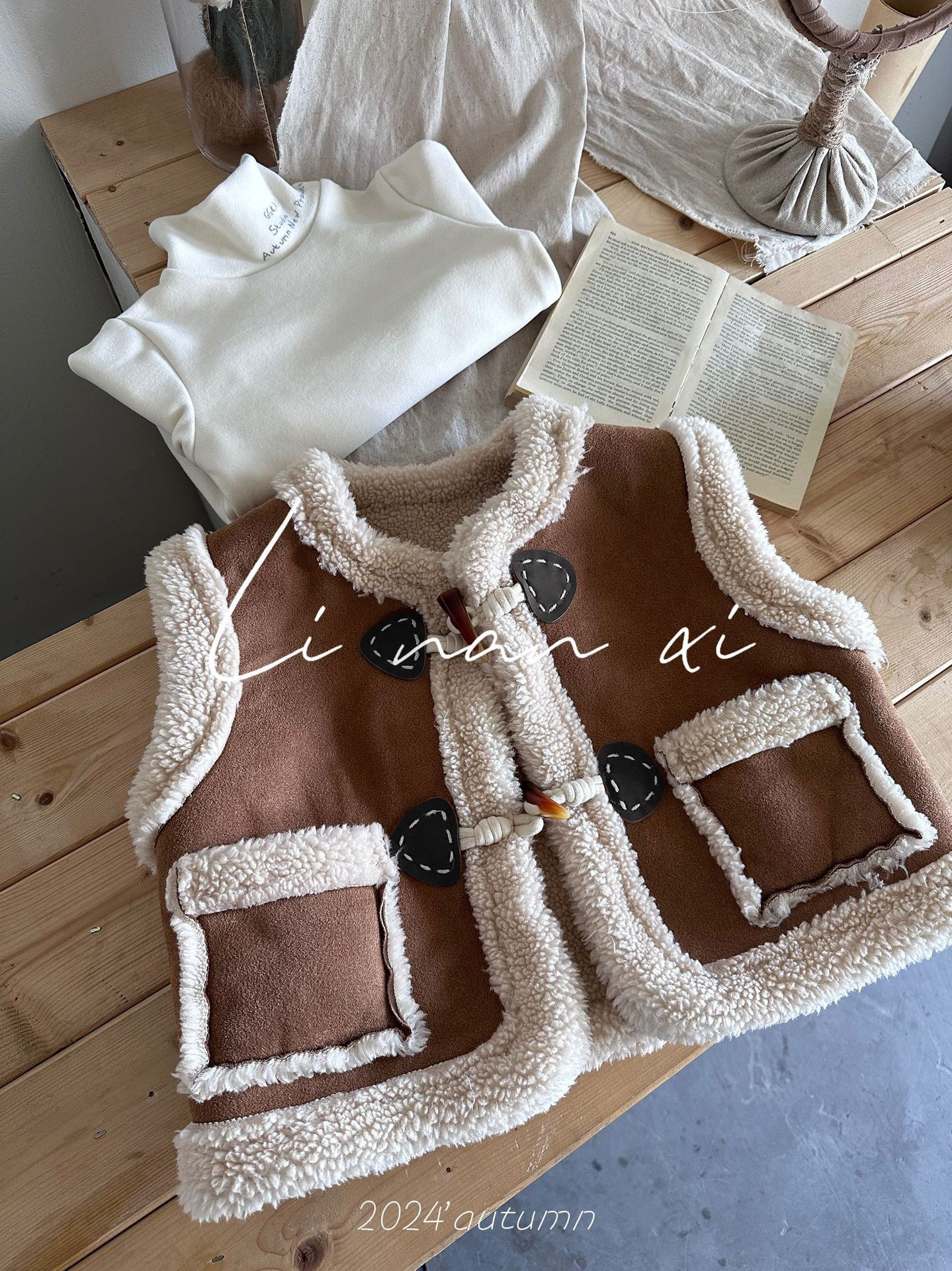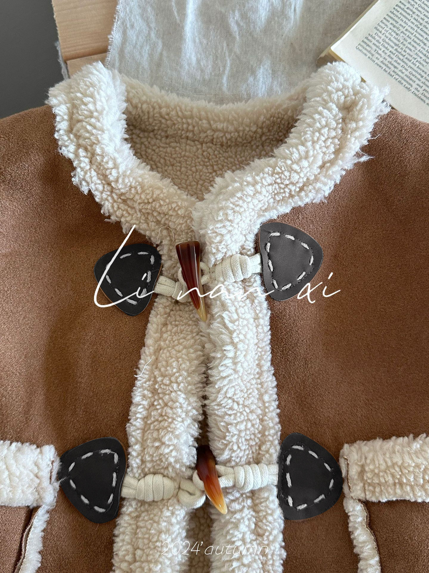 남녀 아동용 스웨이드 일체형 양털 조끼 25년 겨울 신상 아기 다용도 따뜻한 뿔단추 조끼 82468스토어 가기