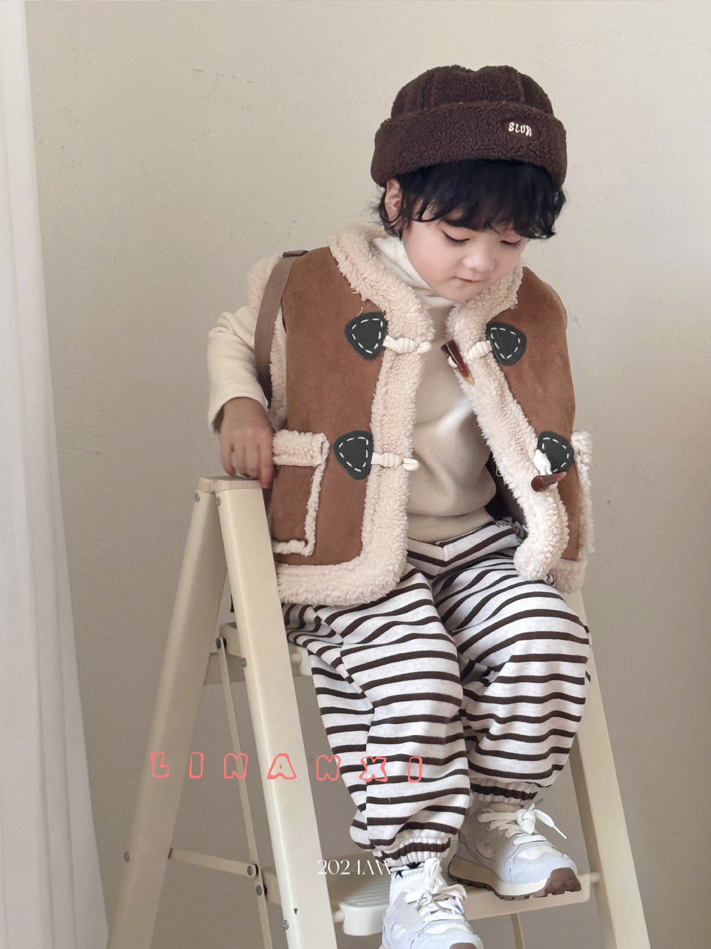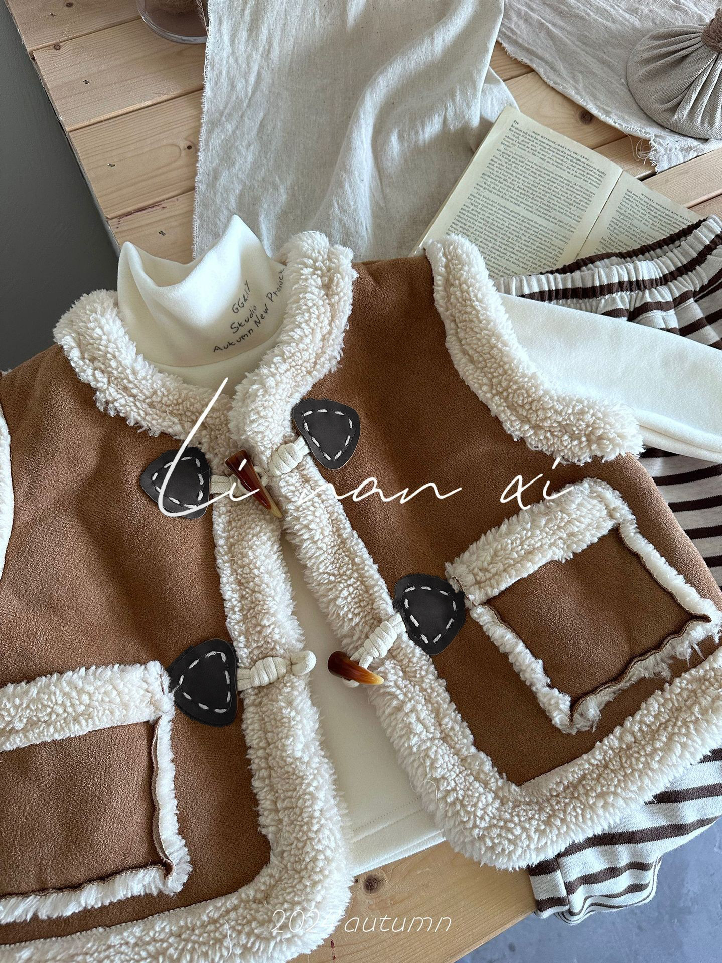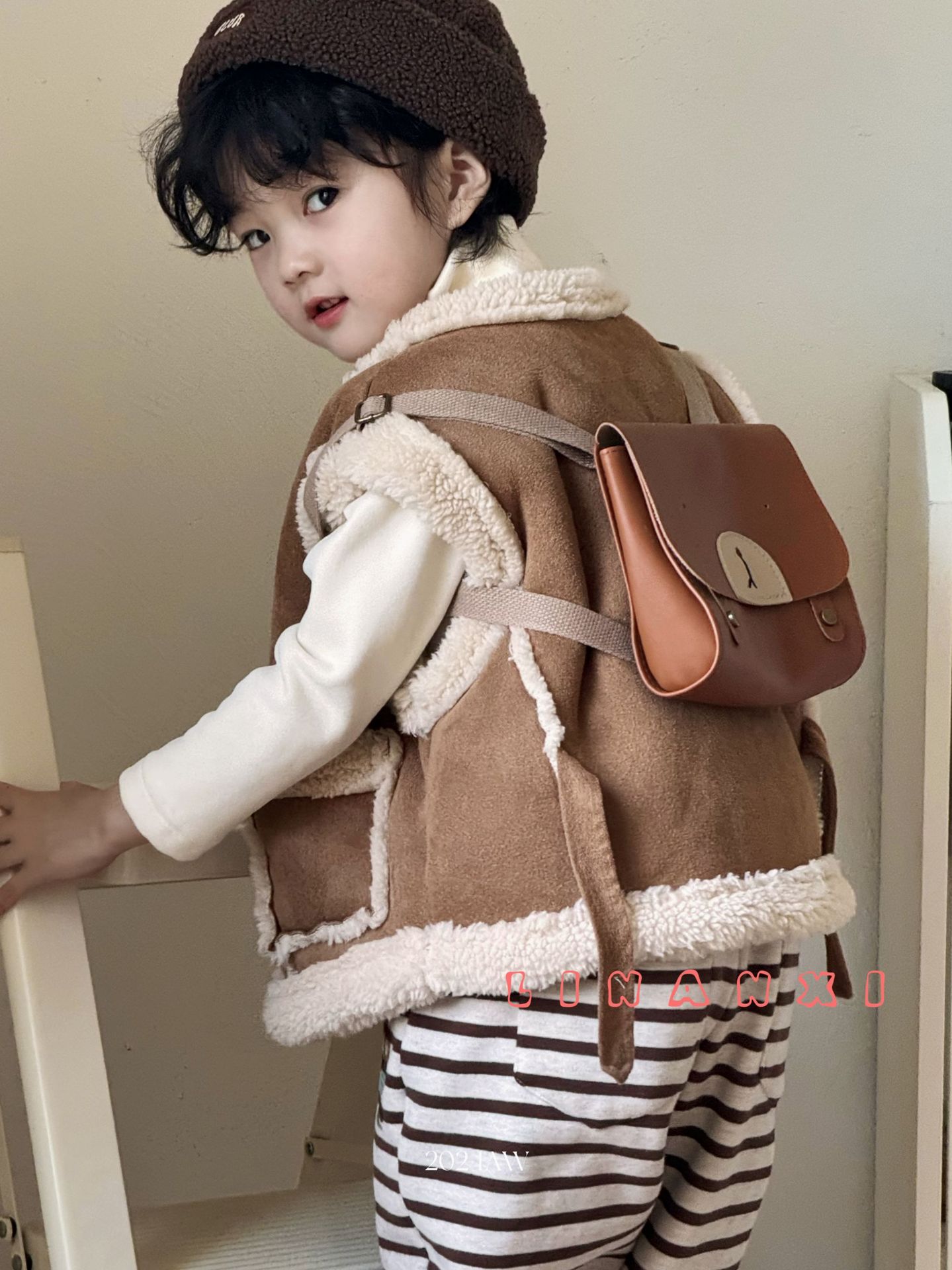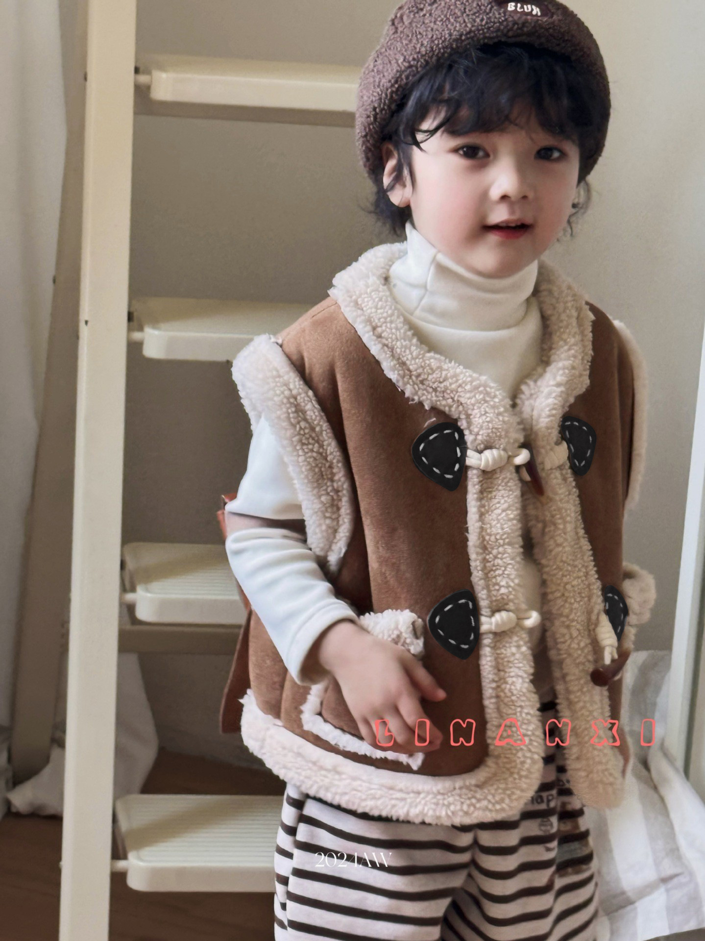 남녀 아동용 스웨이드 일체형 양털 조끼 25년 겨울 신상 아기 다용도 따뜻한 뿔단추 조끼 82468스토어 가기