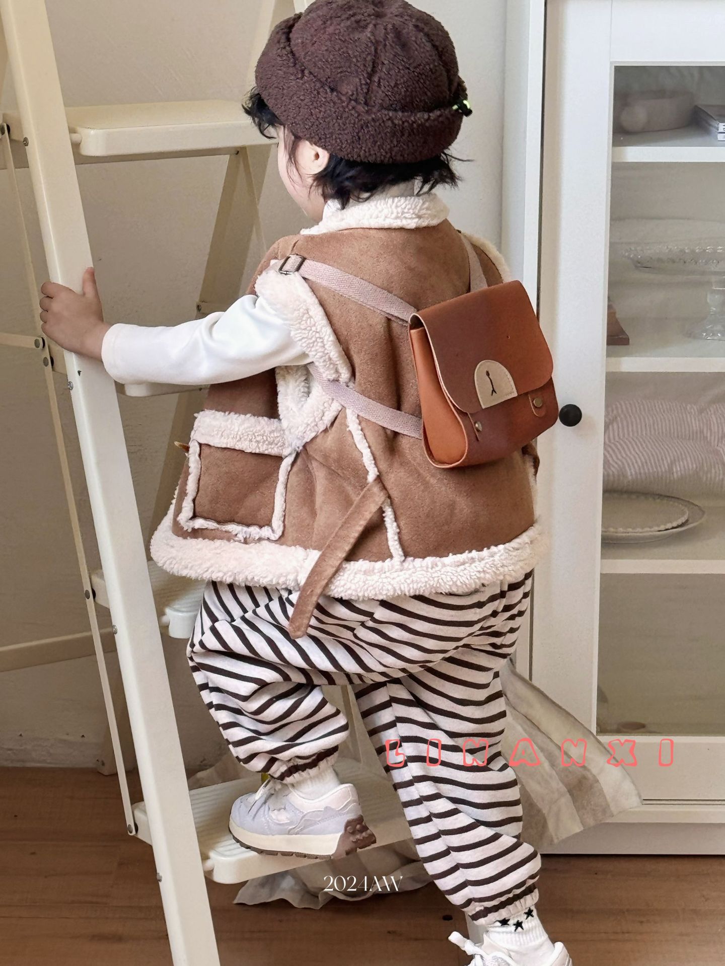 남녀 아동용 스웨이드 일체형 양털 조끼 25년 겨울 신상 아기 다용도 따뜻한 뿔단추 조끼 82468