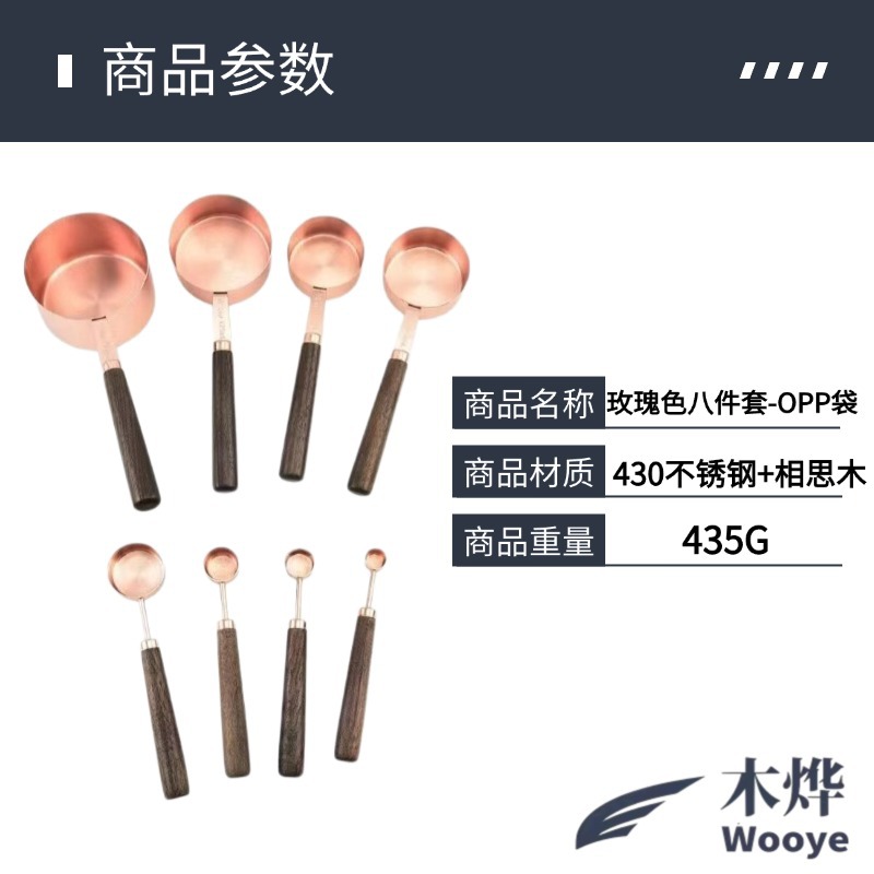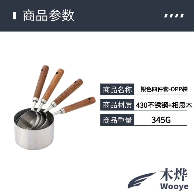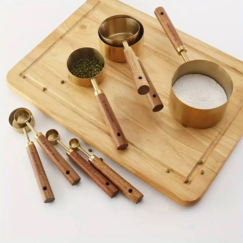 스테인레스 스틸 계량 컵 및 계량 스푼 8 피스 세트 아카시아 나무 계량 컵 및 계량 스푼 계량 도구 분유 계량 베이킹 도구 4 피스 세트