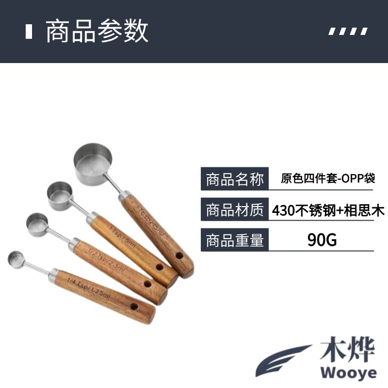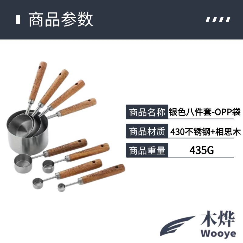 스테인레스 스틸 계량 컵 및 계량 스푼 8 피스 세트 아카시아 나무 계량 컵 및 계량 스푼 계량 도구 분유 계량 베이킹 도구 4 피스 세트스토어 가기