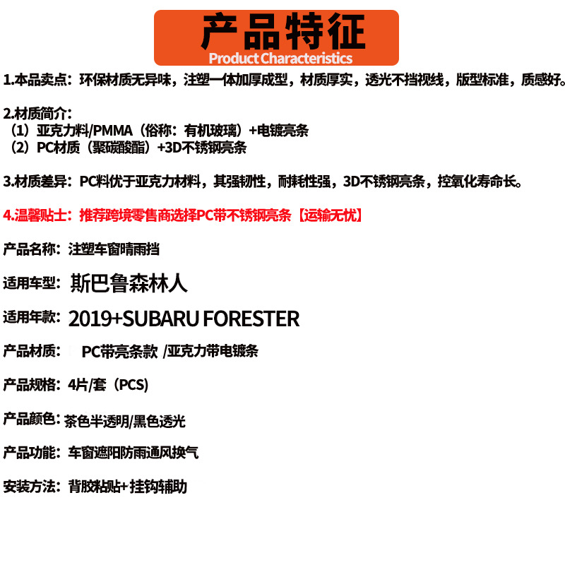 스바루 포레스터 자동차 창 비 방패 태양 바이저 포레스터 2019 창 visos
