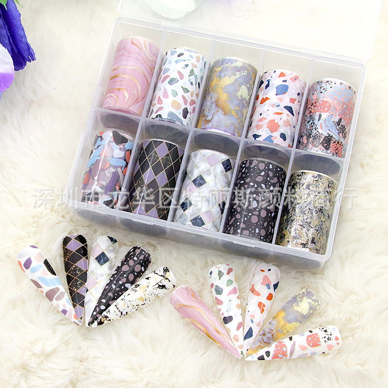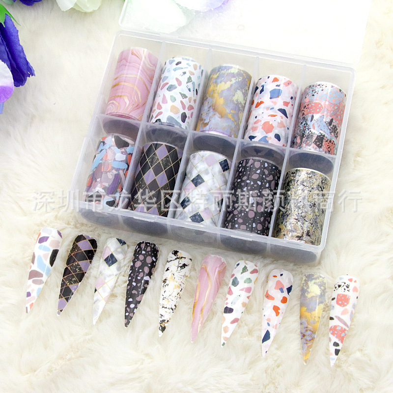 대리석 불규칙한 라인 네일 스티커 도매 네일 장식 10 그리드 네일 네일 스티커스토어 가기