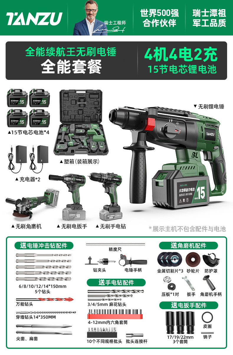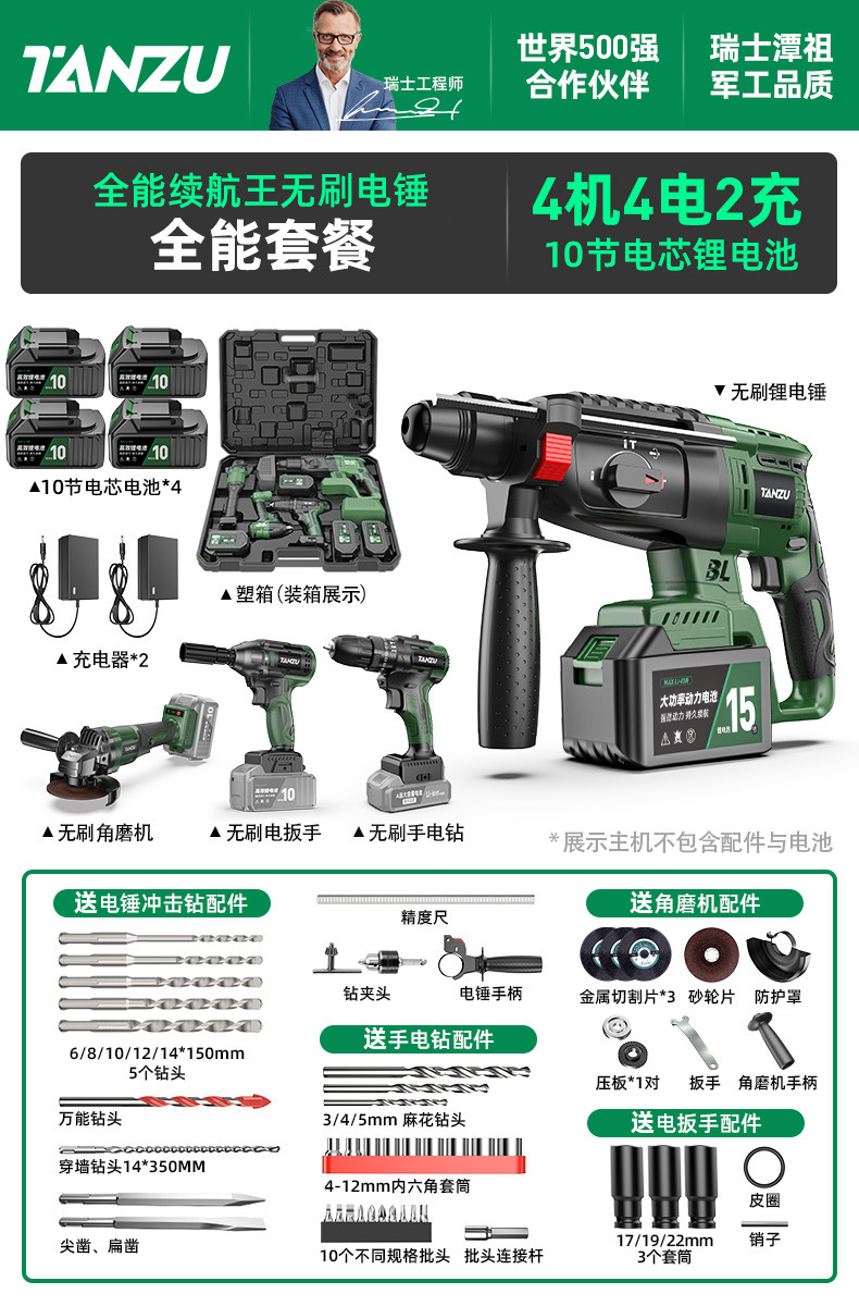 • 만능 배터리 수명 킹 브러시리스 전기 해머 [15섹션 7.0Ah] 배터리 4개 + 만능 패키지 + 브러시리스 4개 기계