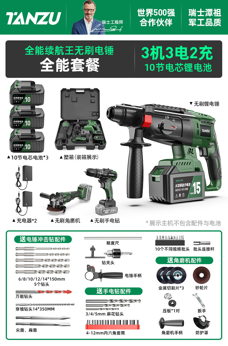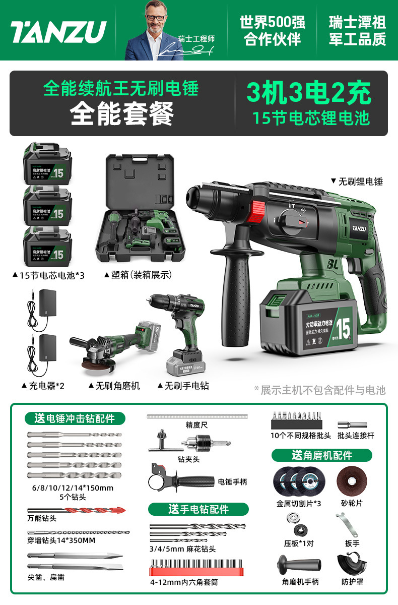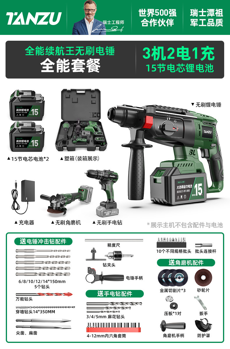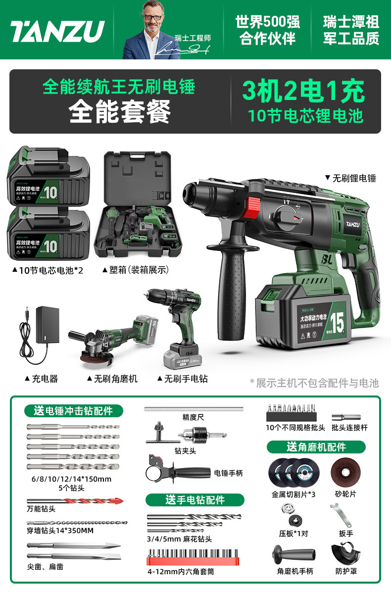 • 만능 배터리 수명 킹 브러시리스 전기 해머 [15섹션 7.0Ah] 배터리 3개 + 만능 패키지 + 브러시리스 3개 기계