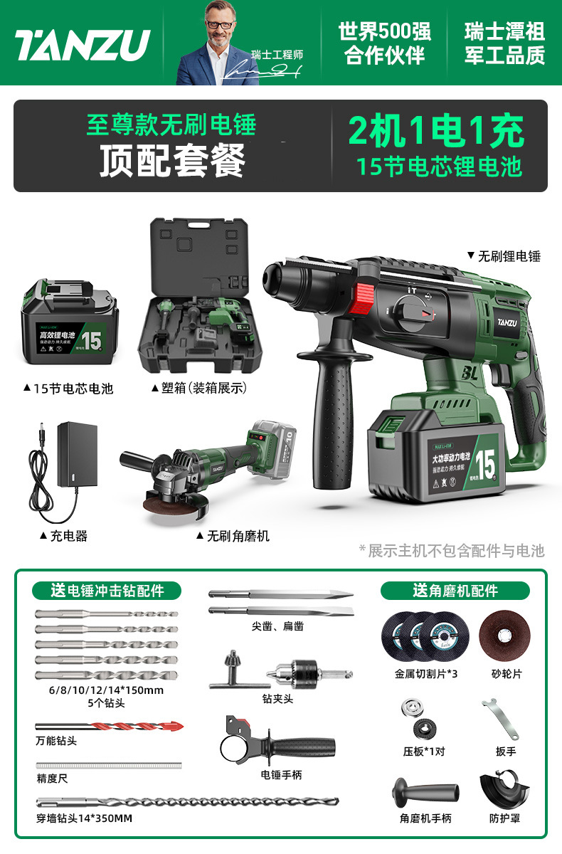 • 만능 배터리 수명 킹 브러시리스 전기 해머 [15섹션 7.0Ah] 배터리 2개 + 만능 패키지 + 브러시리스 3개 기계