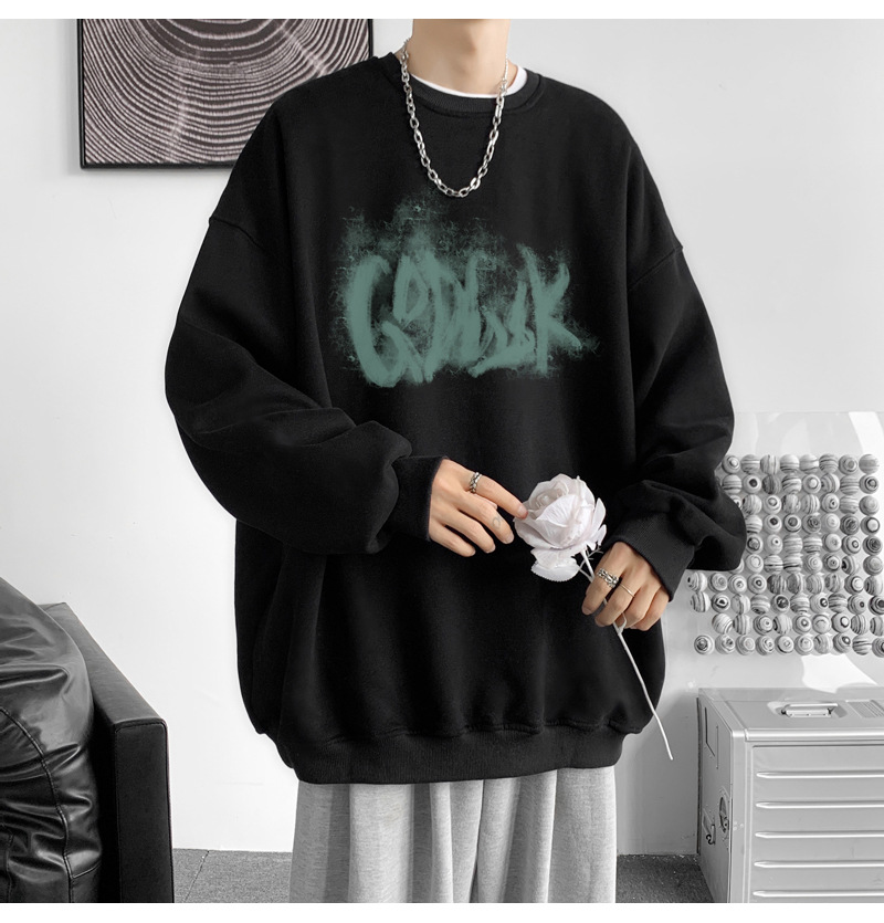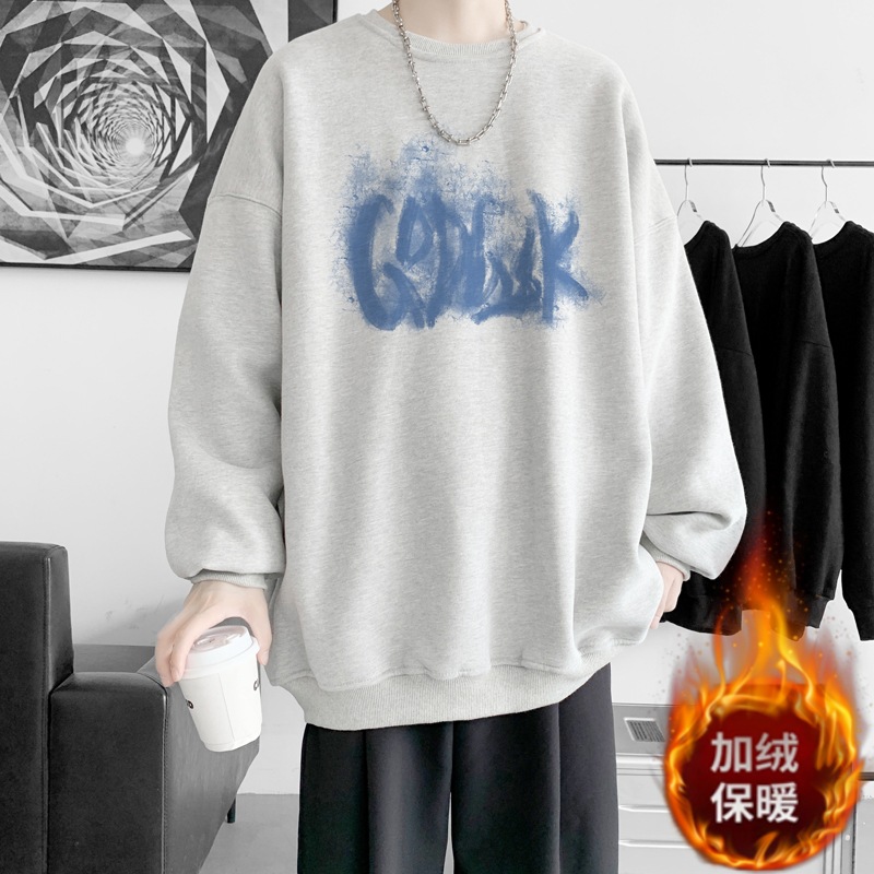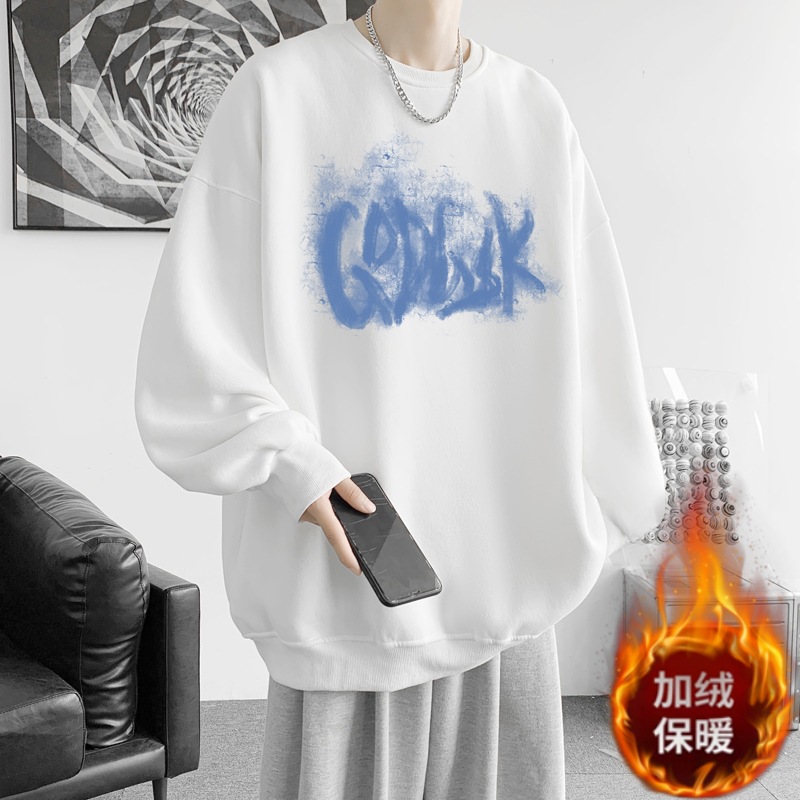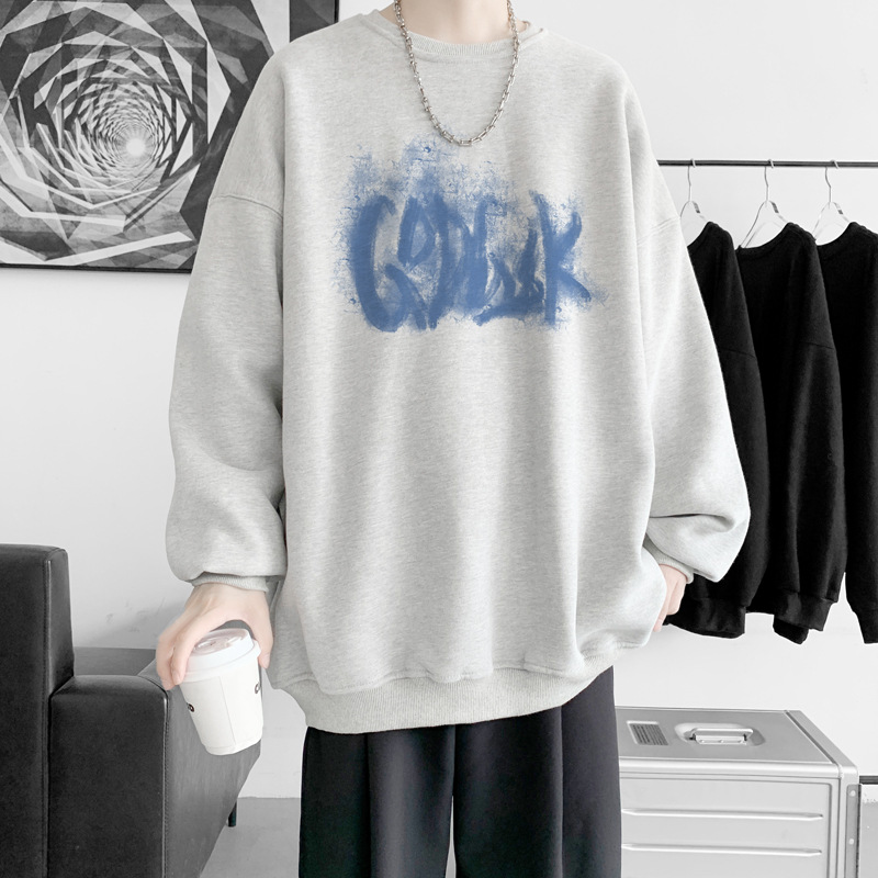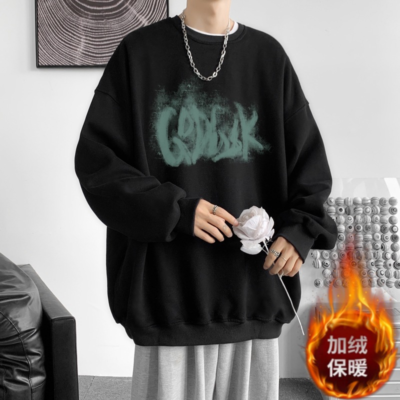 트렌디 한 브랜드 스웨트 셔츠 남성 봄과 가을 겨울 패션 잘 생긴 바이브 기모 긴 소매 한국 느슨한 남성 캐주얼 티셔츠스토어 가기